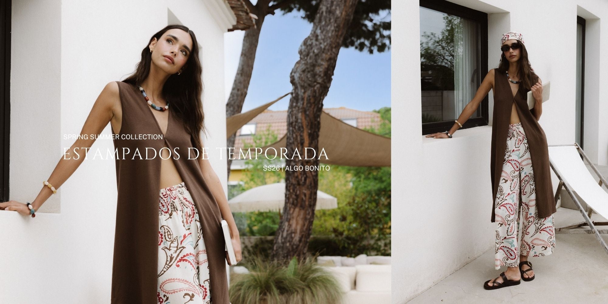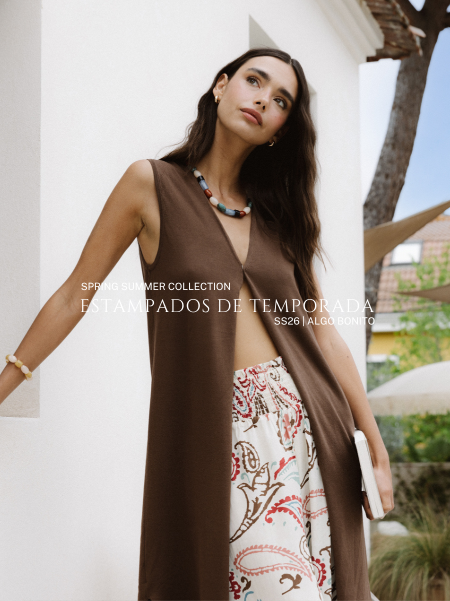 Pantalón fluido rayas beige