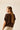 Chaqueta de punto fino en tono marrón chocolate. Diseño de corte recto, escote pico y manga corta con caída relajada. Se abrocha en el frontal con botones nacarados y el bajo está rematado con canalé que le aporta estructura sin ceñir.