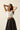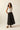 Falda midi en color negro, de tiro alto y corte amplio con vuelo. Confeccionada en tejido ligero, presenta cinturilla elástica en la parte trasera para un ajuste cómodo y favorecedor. El diseño incorpora paneles que aportan estructura y caída fluida.