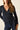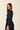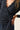 Jersey de punto azul marino con diseño cruzado y lazo lateral ajustable. Escote en pico adornado con un delicado ribete de encaje que aporta un aire femenino y sutil. Manga larga y corte entallado que estiliza la silueta.