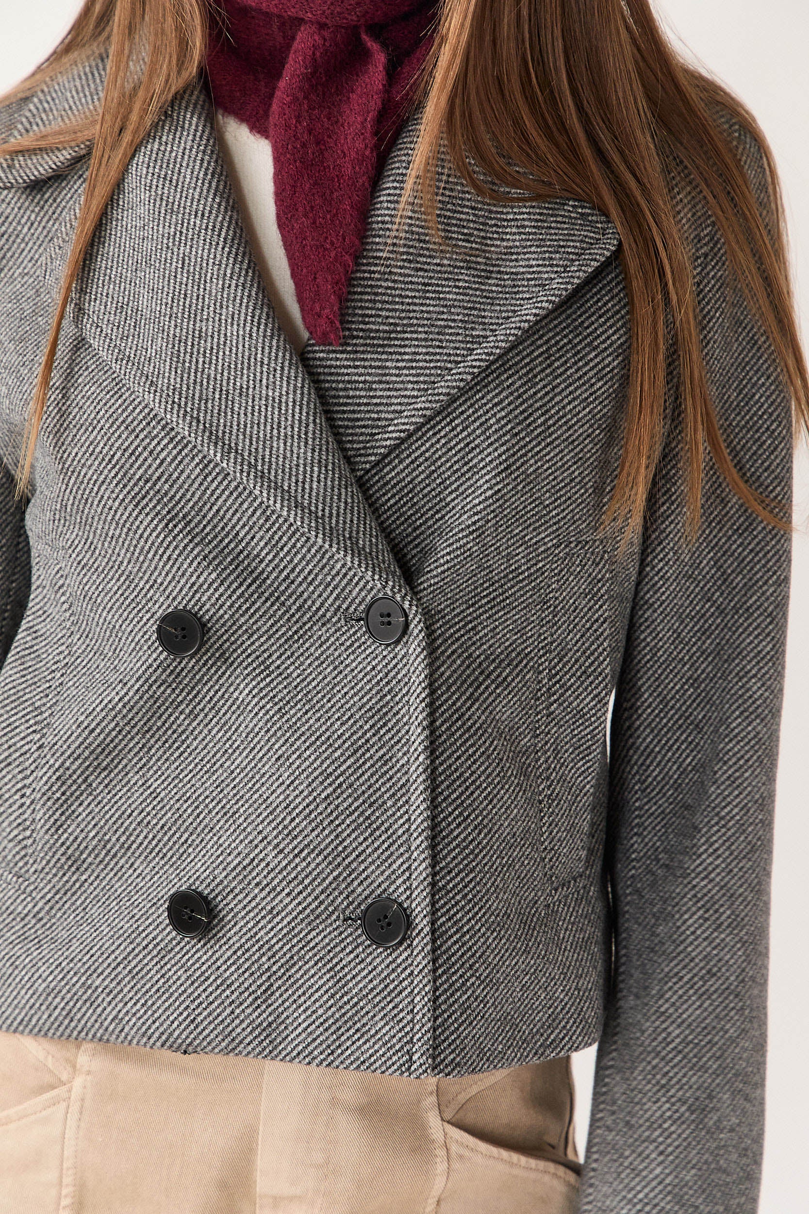 Abrigo corto en gris con dibujo de espiga