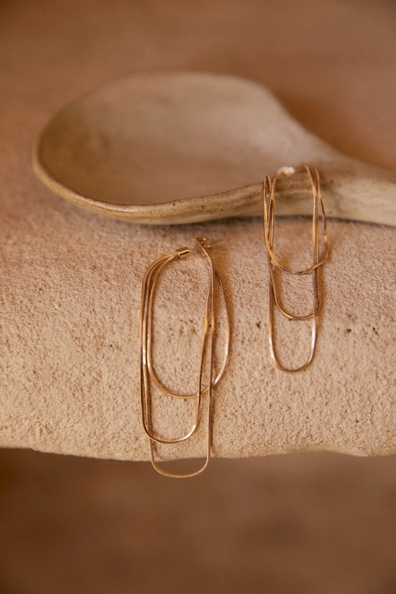 Pendiente largo en color dorado con diseño de varias cadenas finas superpuestas en forma de cascada. Su movimiento ligero y elegante aporta luminosidad y un toque sofisticado a cualquier look, convirtiéndolo en un accesorio perfecto para elevar estilismos tanto de día como de noche.