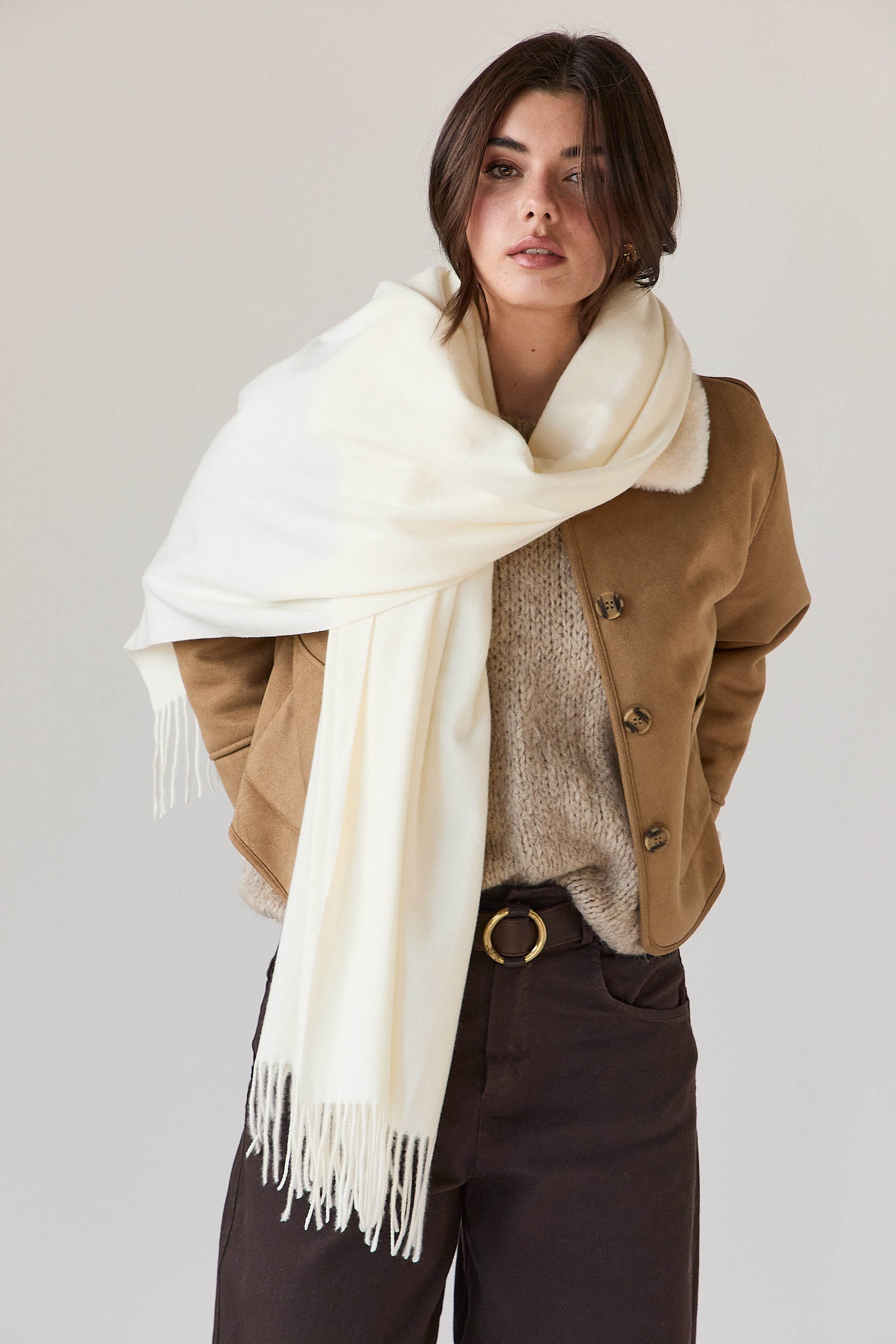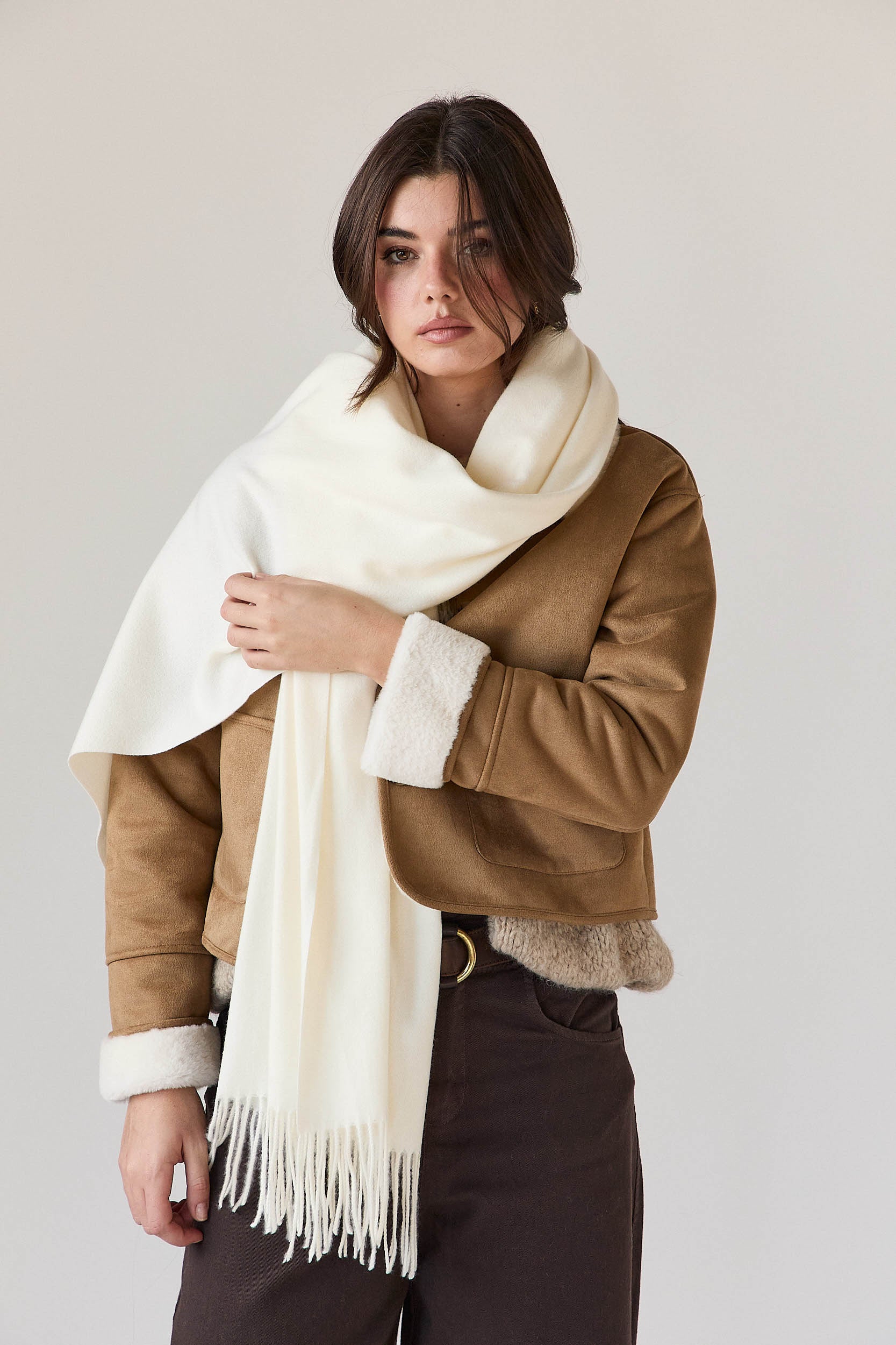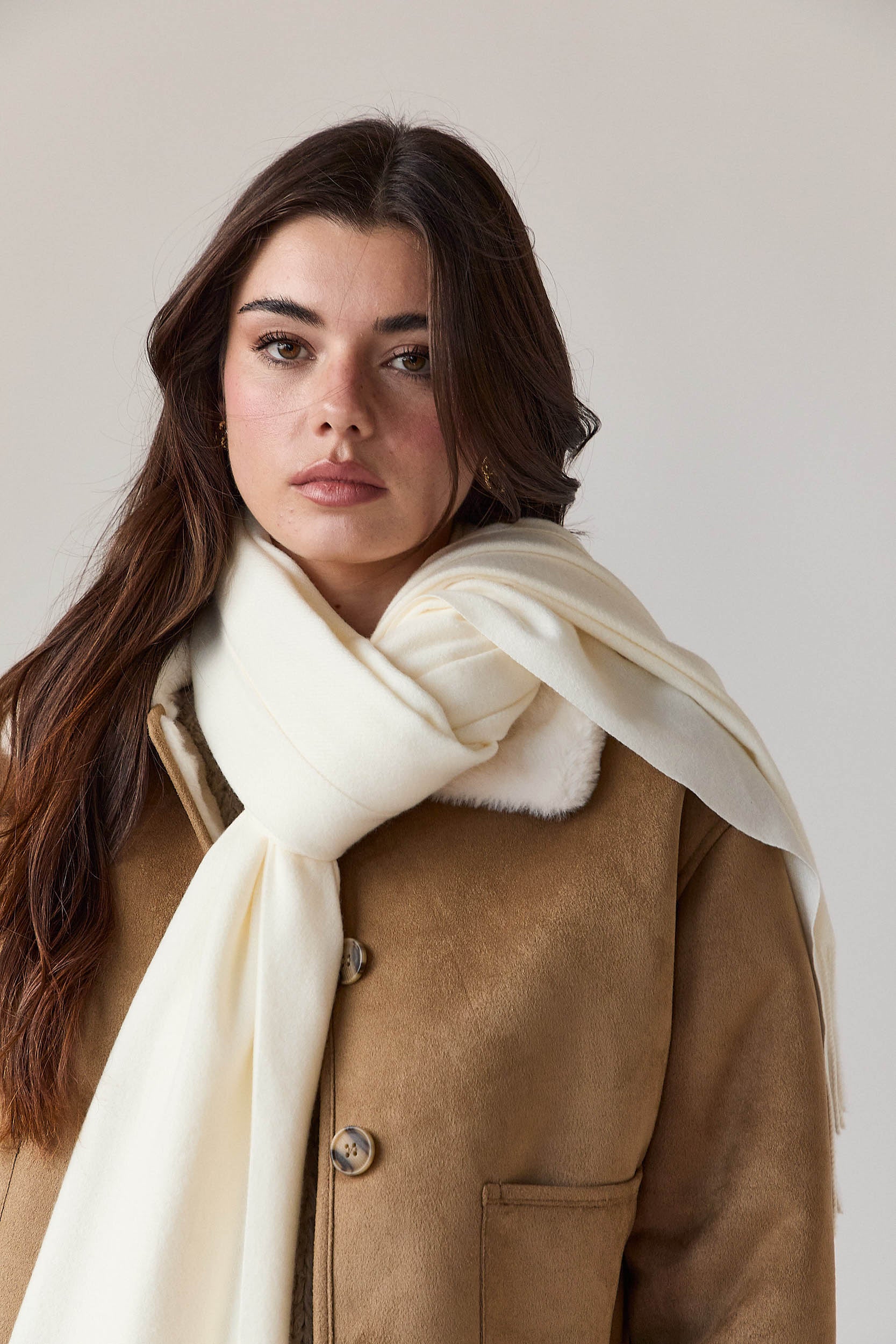 Bufanda lisa en tono natural, de tacto suave y caída fluida. Su diseño sencillo y limpio permite combinarla con cualquier abrigo o chaqueta, aportando calidez sin añadir volumen excesivo.