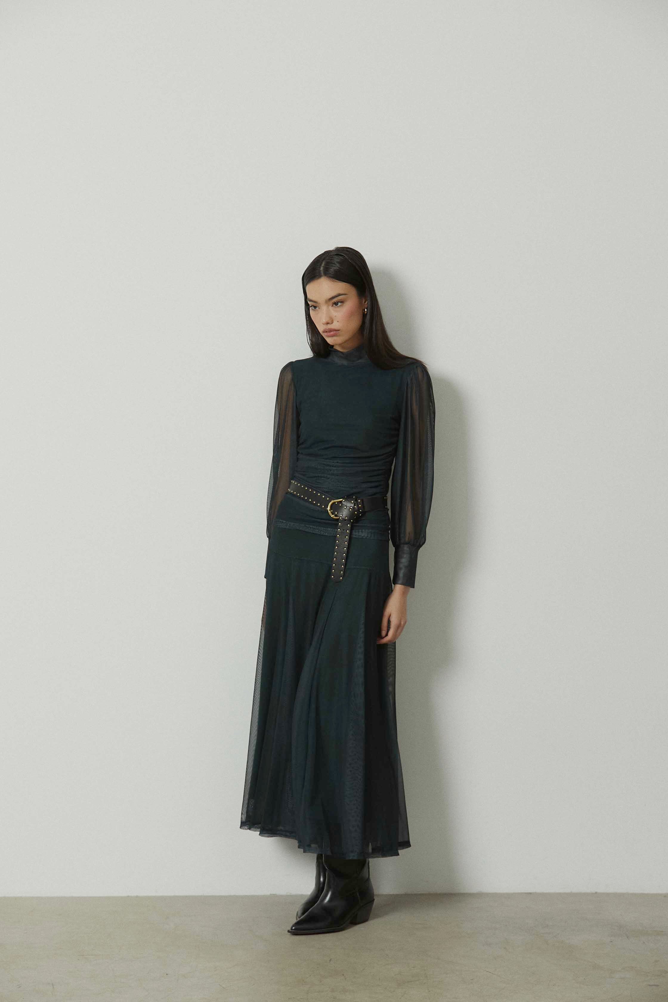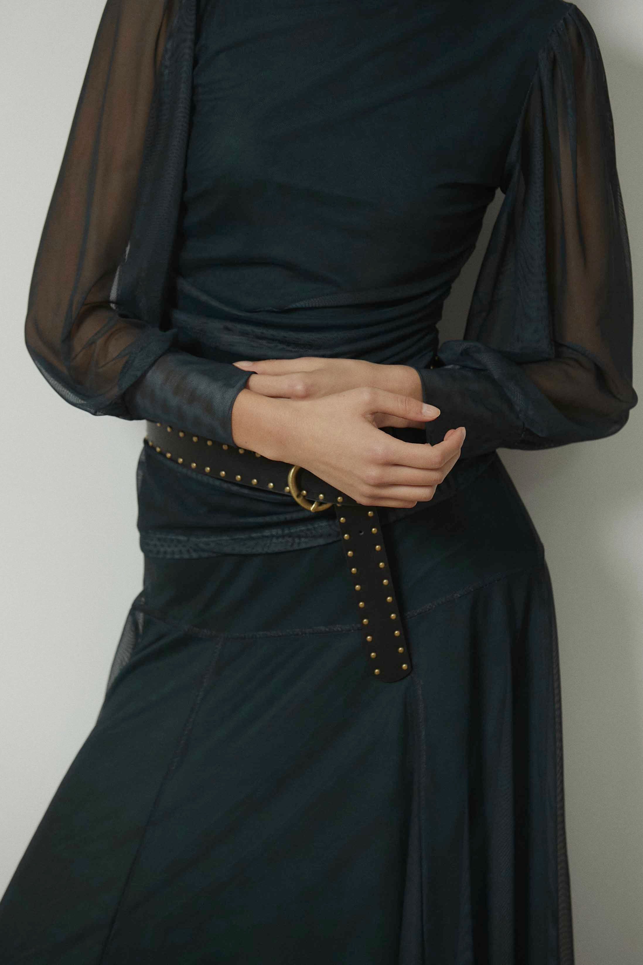 Una prenda pensada para combinar con tops de tul a juego, blusas ligeras o prendas de punto, funcionando tanto en looks más especiales como en combinaciones de diario.
