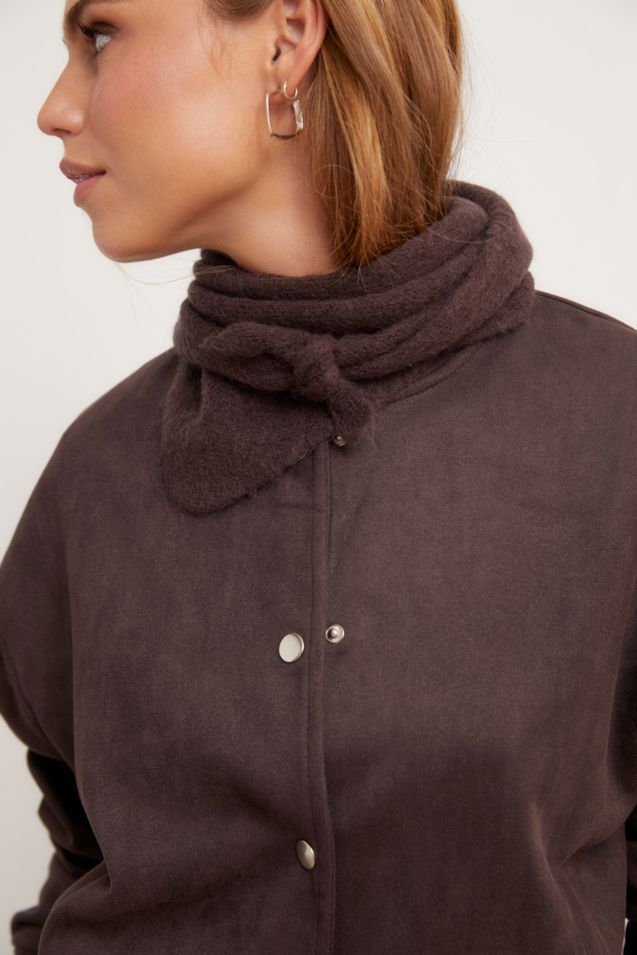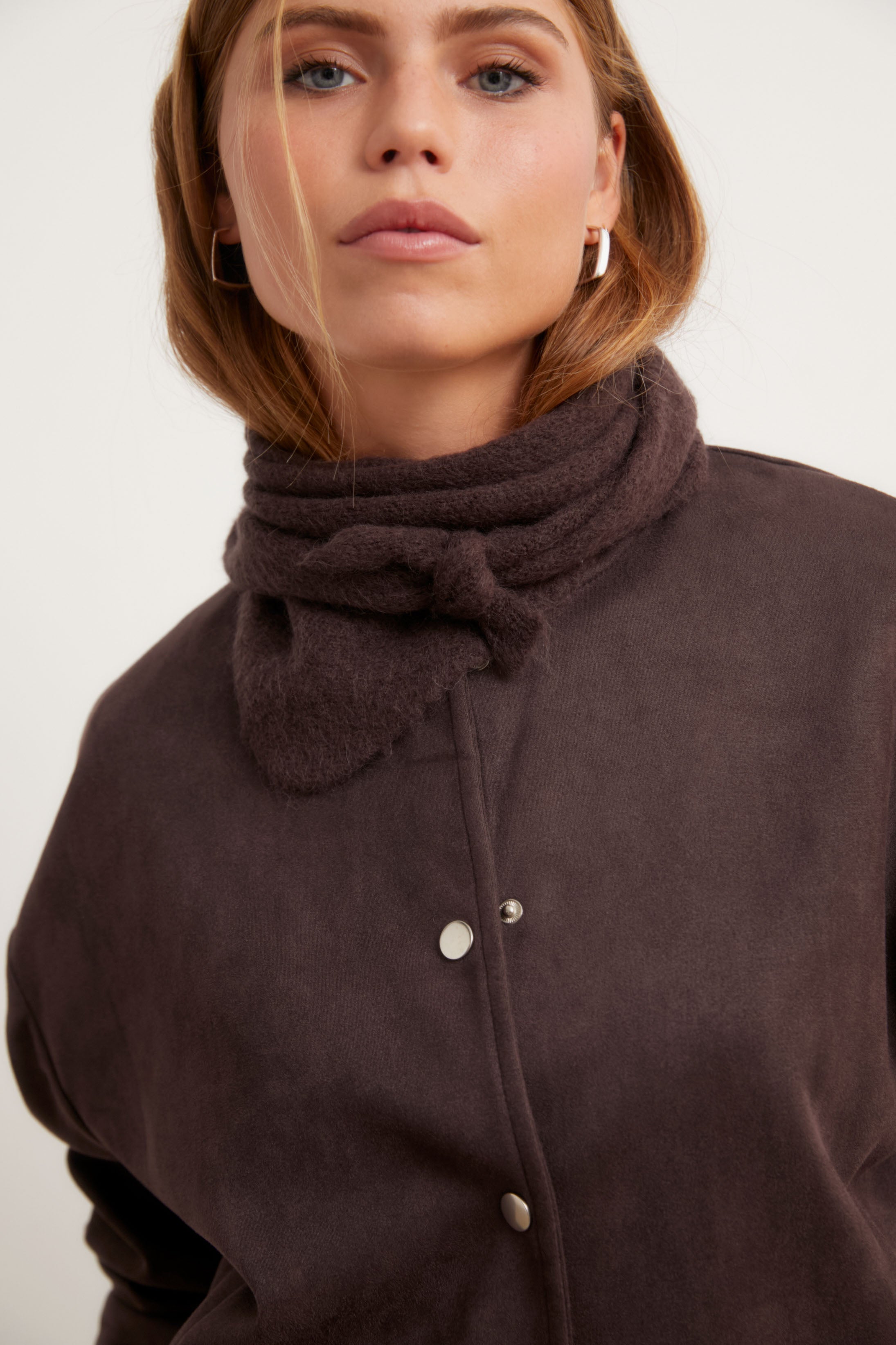 Perfecto para llevar con chaquetas de efecto ante o abrigos cortos, aportando un toque cálido a los estilismos de diario. Combínalo con prendas en tonos beige, topo o gris para un conjunto armónico de inspiración otoñal.