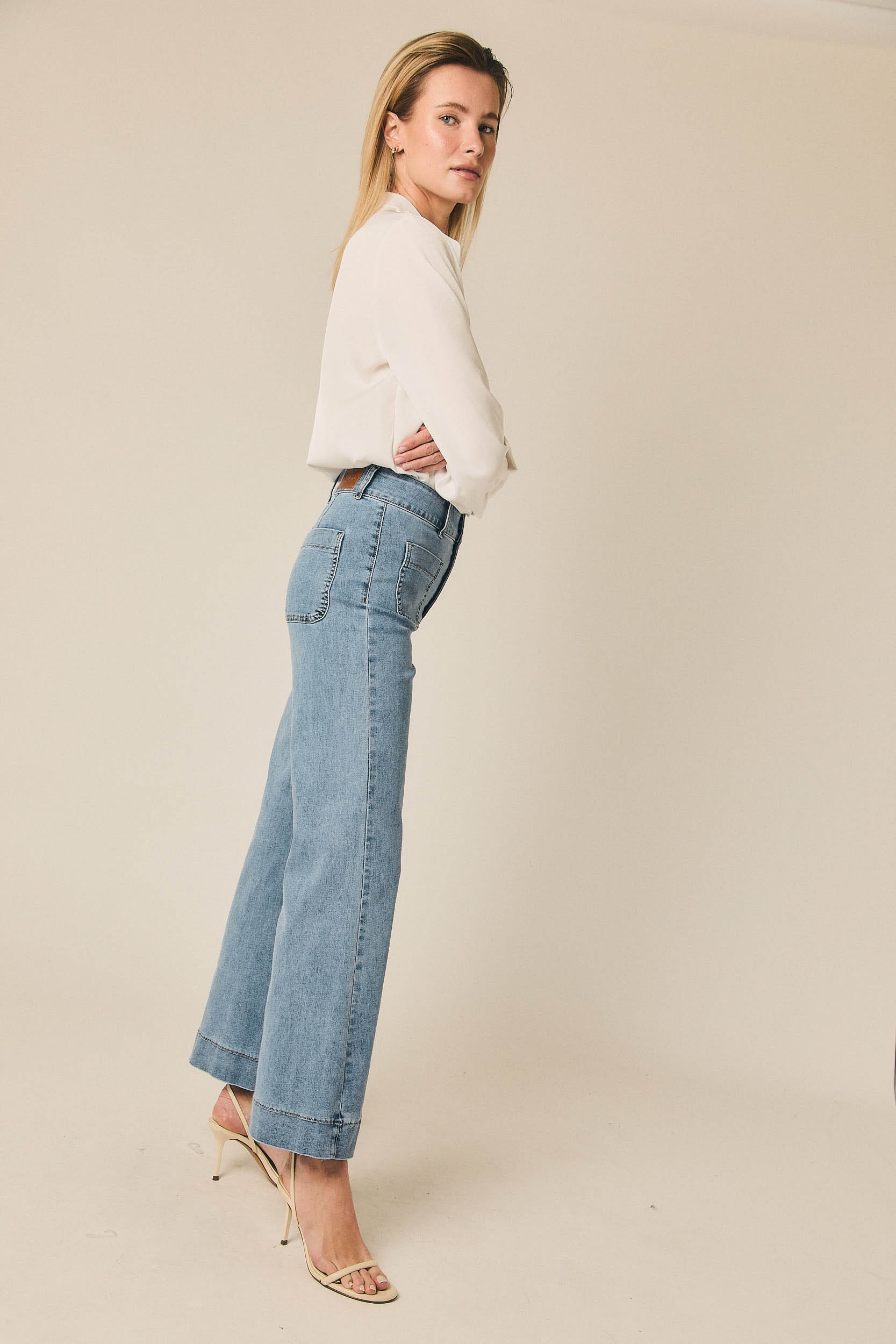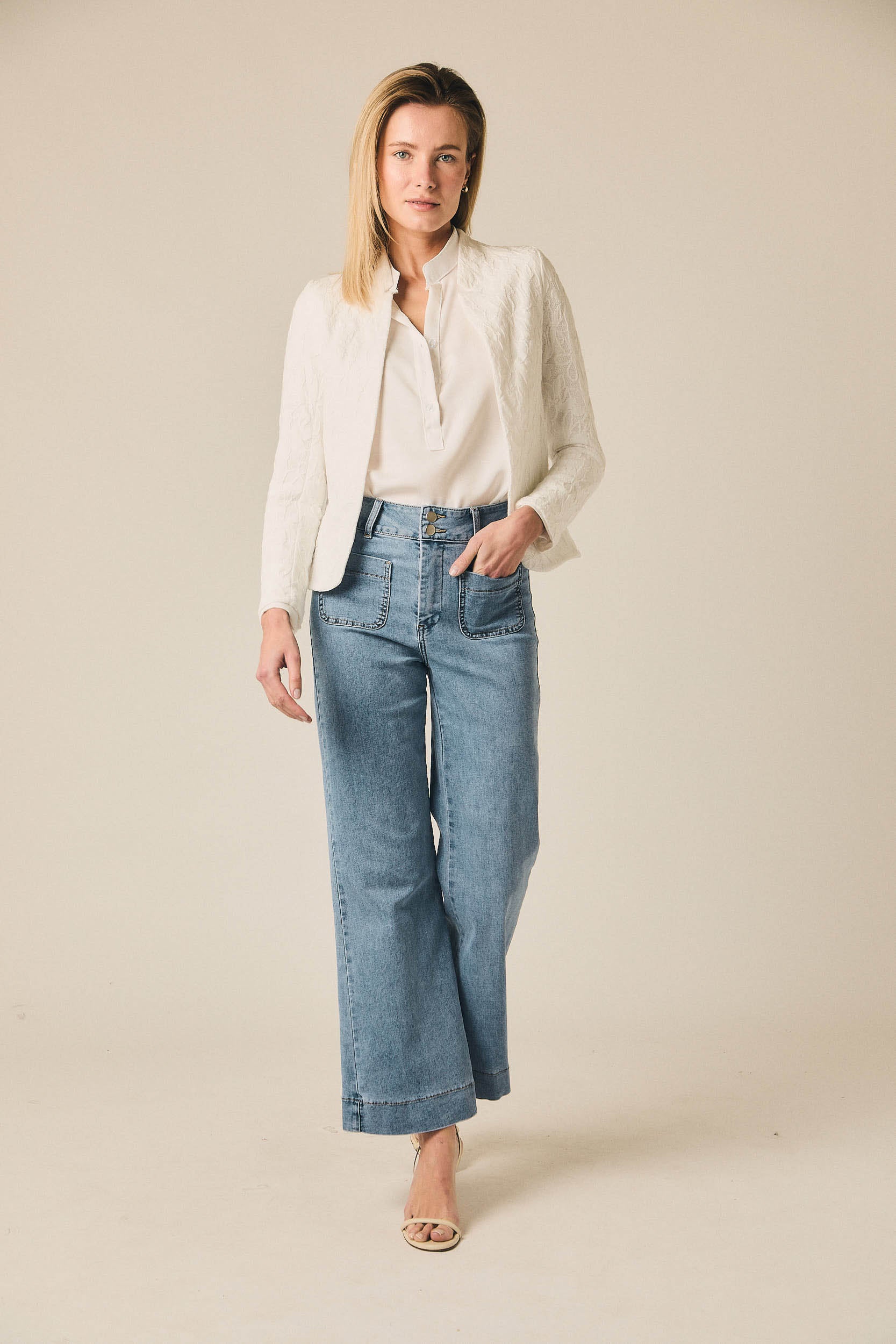 Un vaquero pensado para looks de diario, fácil de combinar con blusas estampadas, camisas fluidas o jerseys finos. Funciona bien tanto con calzado plano como con botines o mocasines, adaptándose a jornadas largas, planes informales o looks más cuidados según cómo se combine.
