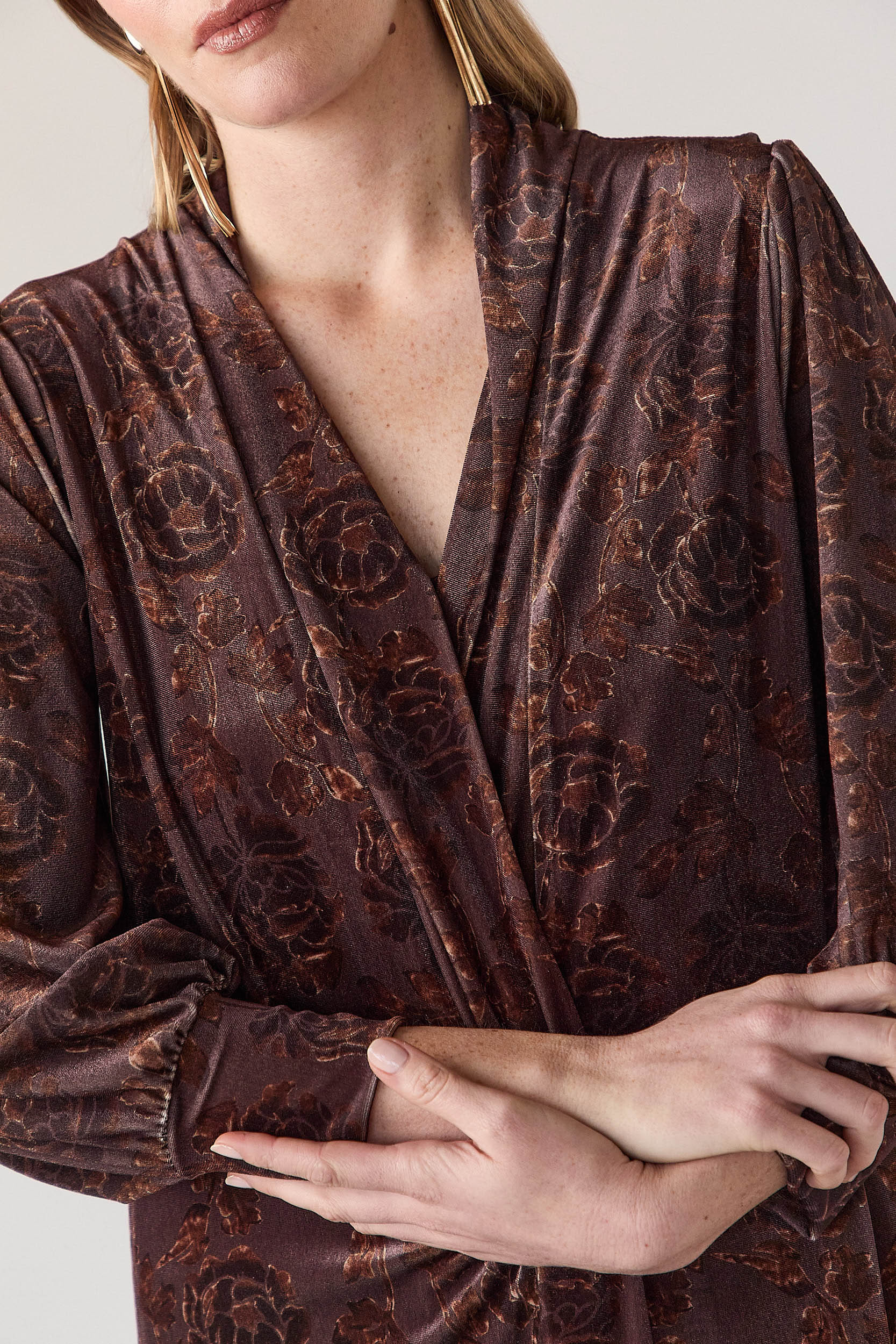 Kimono largo floral terciopelo marrón