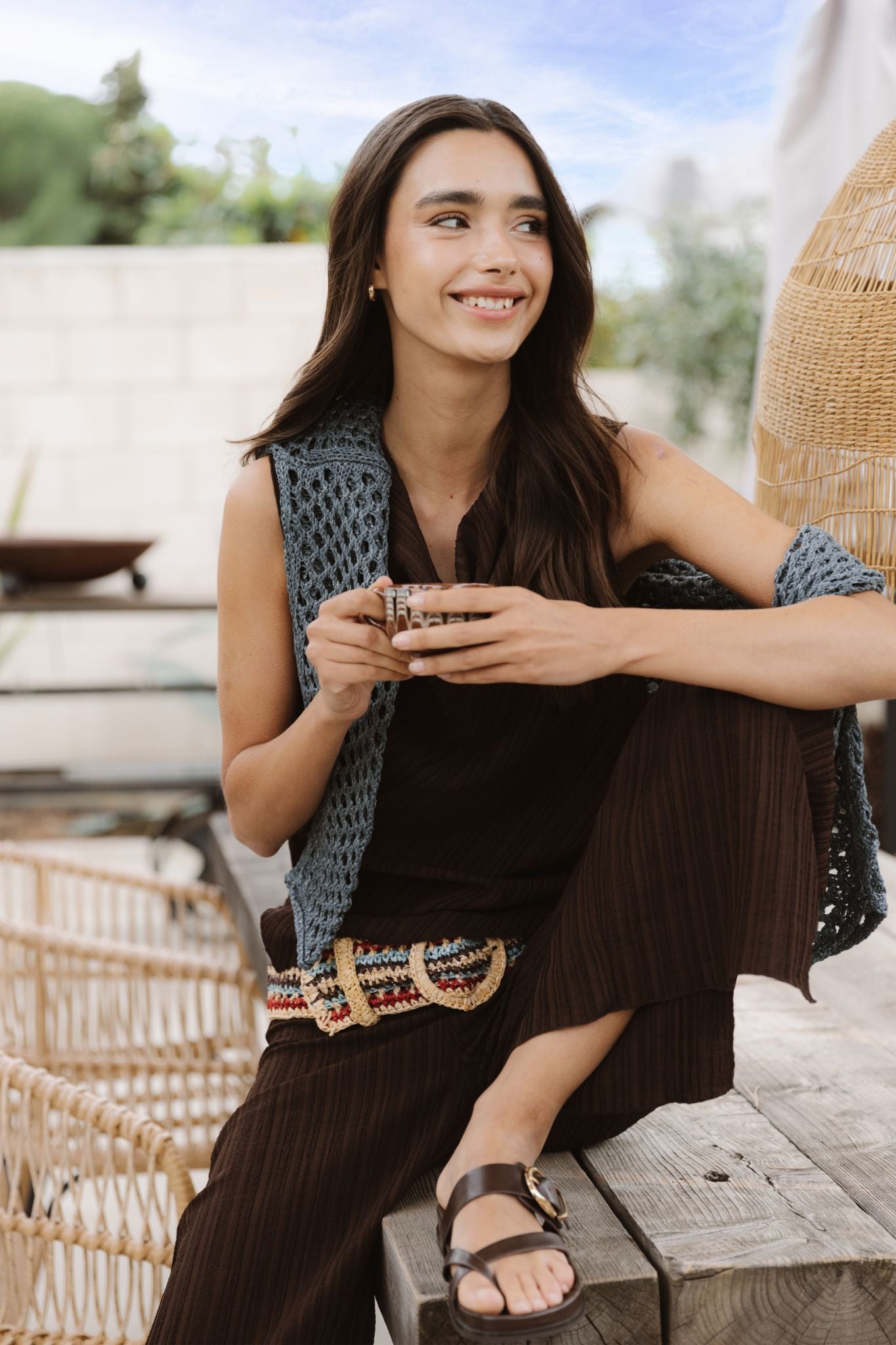 Perfecta para looks de verano con vestidos, faldas o pantalones fluidos. También combina con conjuntos más relajados de día, aportando un punto cuidado sin perder comodidad.