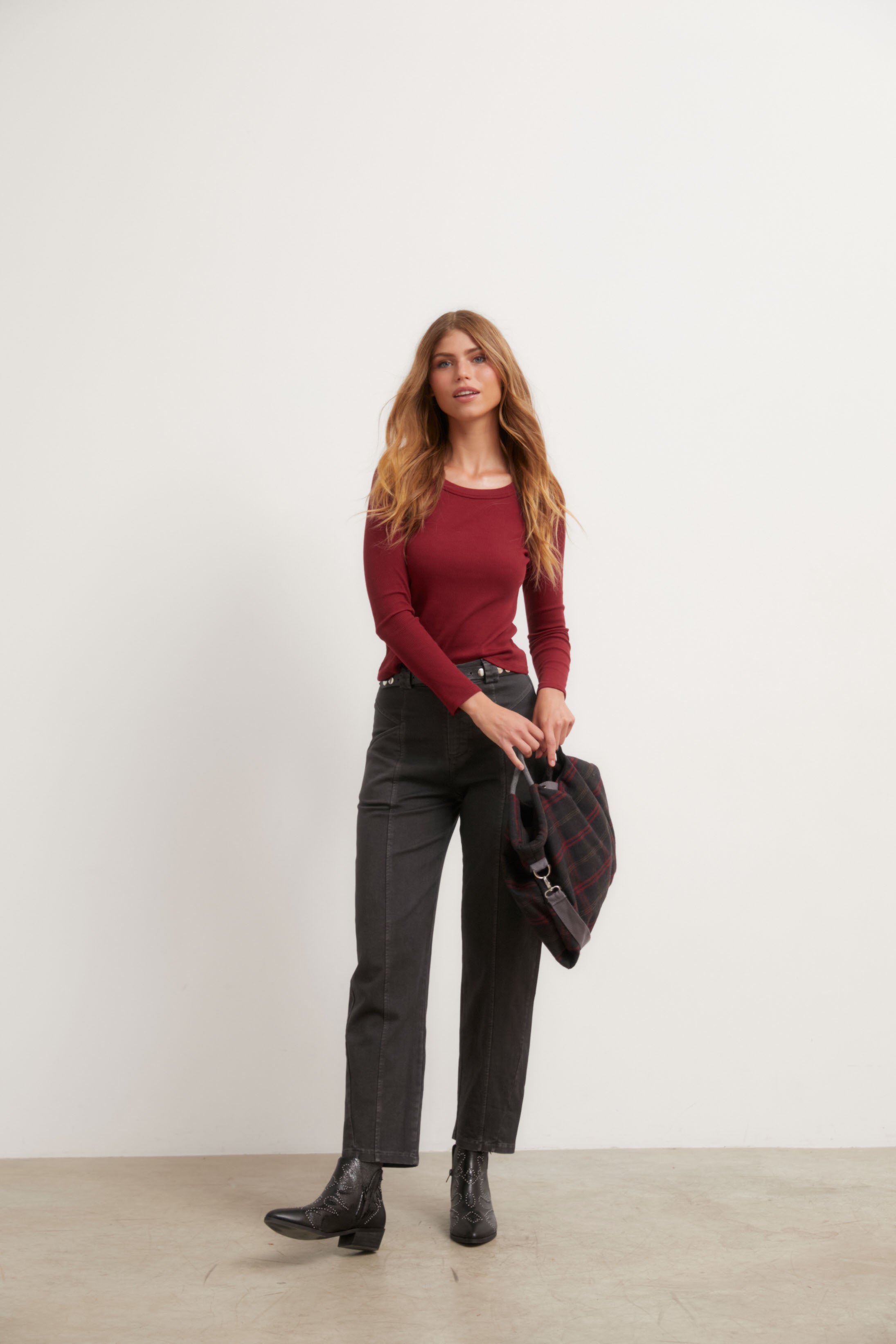 Un vaquero de tendencia que eleva cualquier look. Llévalo con camisetas básicas y deportivas para un aire casual o combínalo con blusas y botines para un estilo más cuidado.