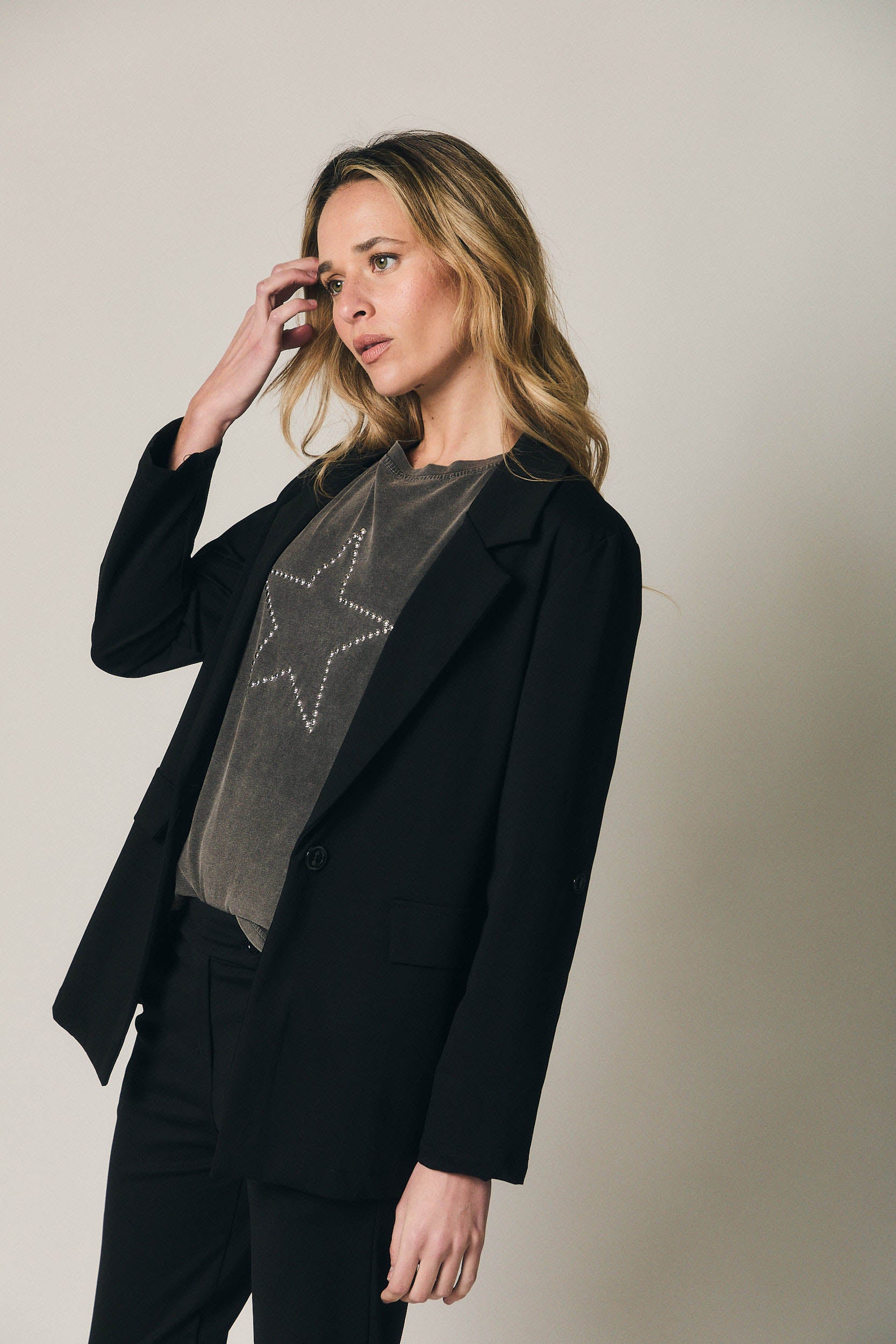 Una prenda que funciona igual de bien con pantalón a juego para un conjunto completo, como combinada con jeans, camisetas especiales o blusas fluidas. Perfecta para el día a día, para la oficina o para elevar un look más casual con un solo gesto.