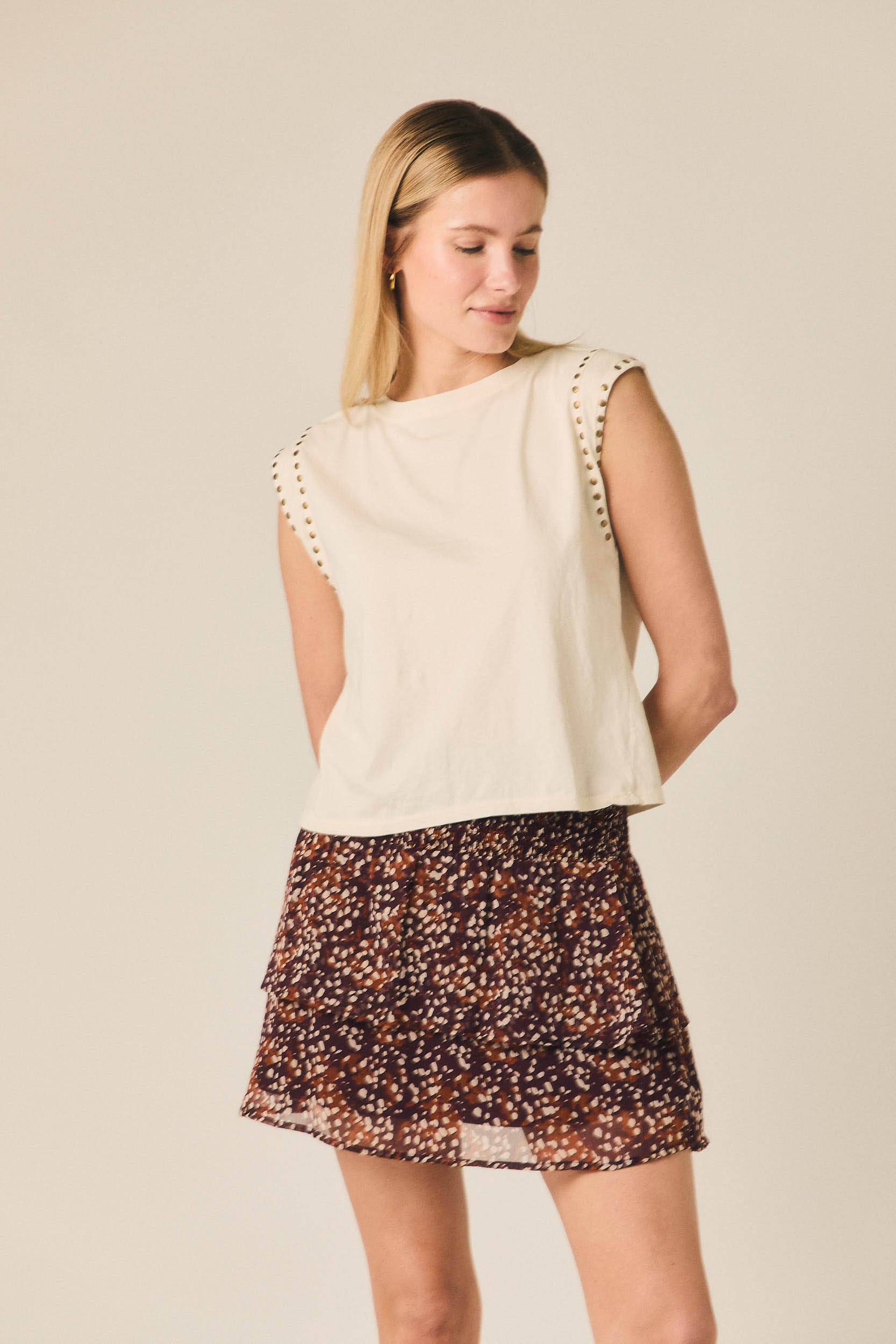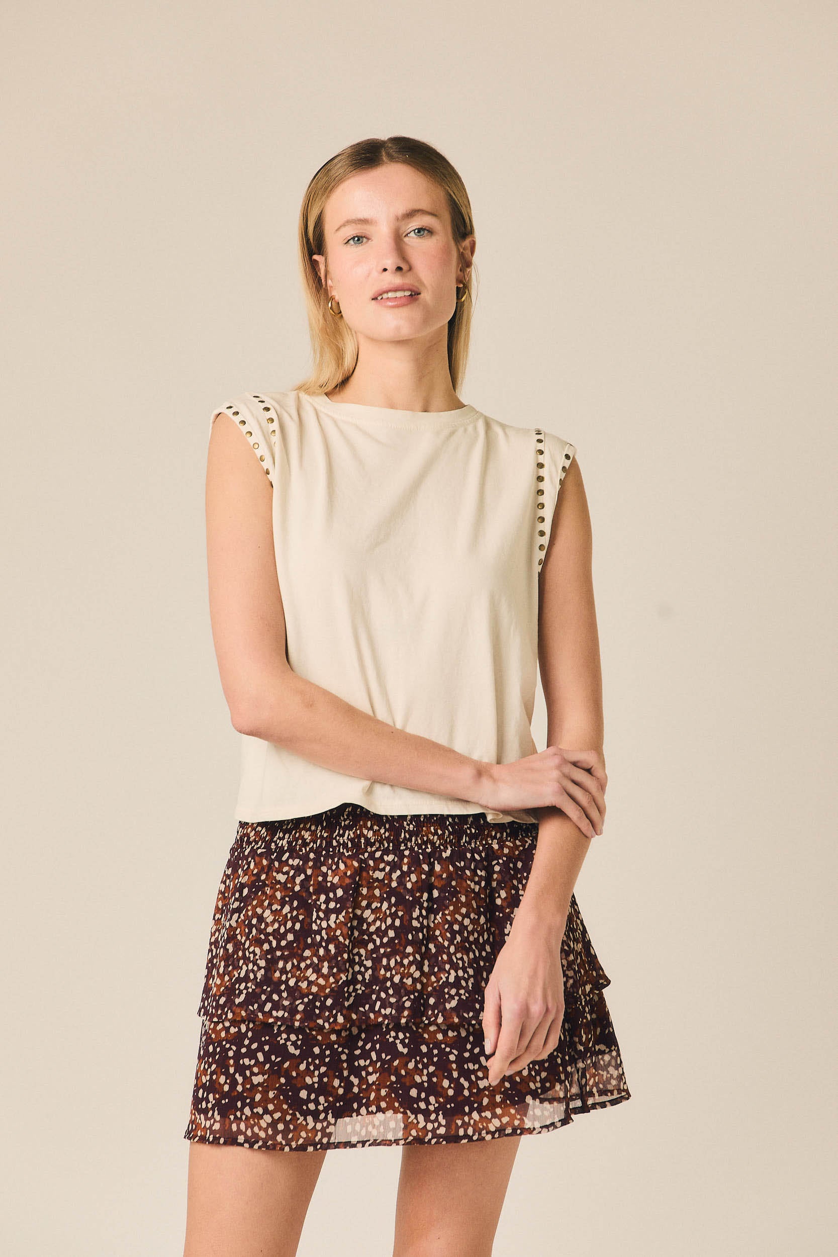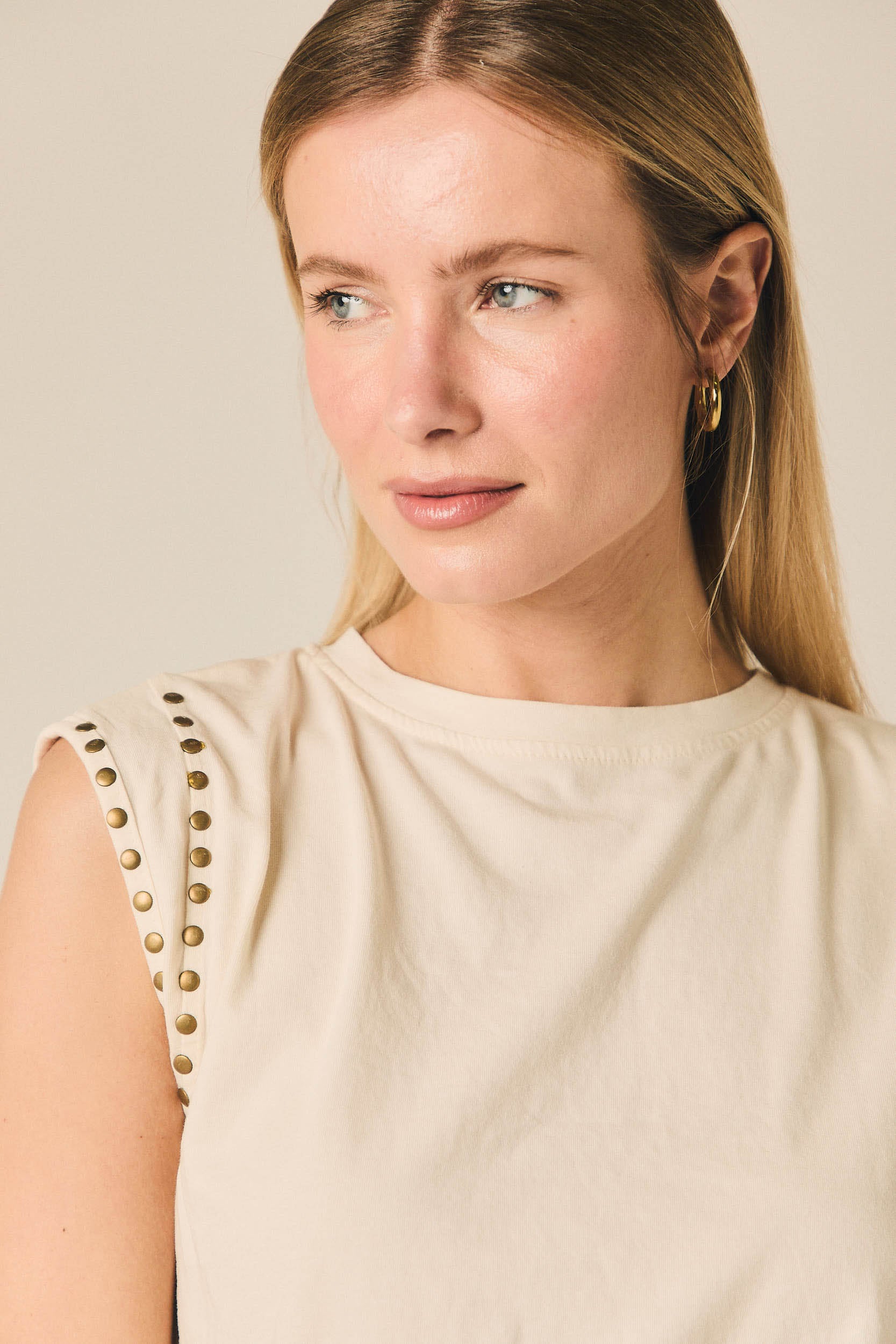 Camiseta sin mangas con tachas crudo