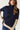 Jersey de punto suave en tono azul marino con mangas y ribetes en contraste beige. Presenta cuello alto de canalé, costura central decorativa y aberturas laterales que aportan movimiento y comodidad. Su diseño amplio y los detalles bicolor lo convierten en una prenda versátil y con personalidad.