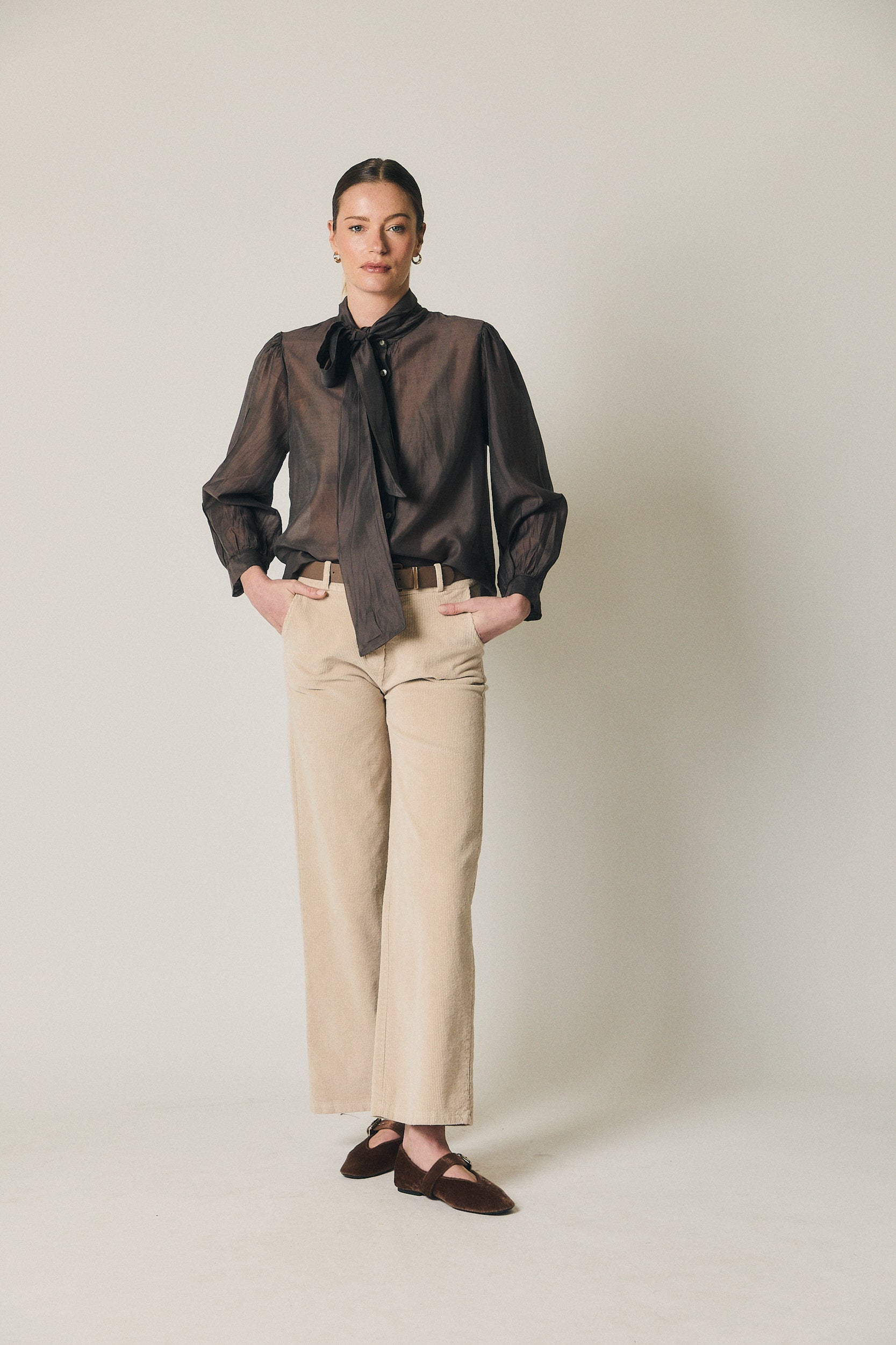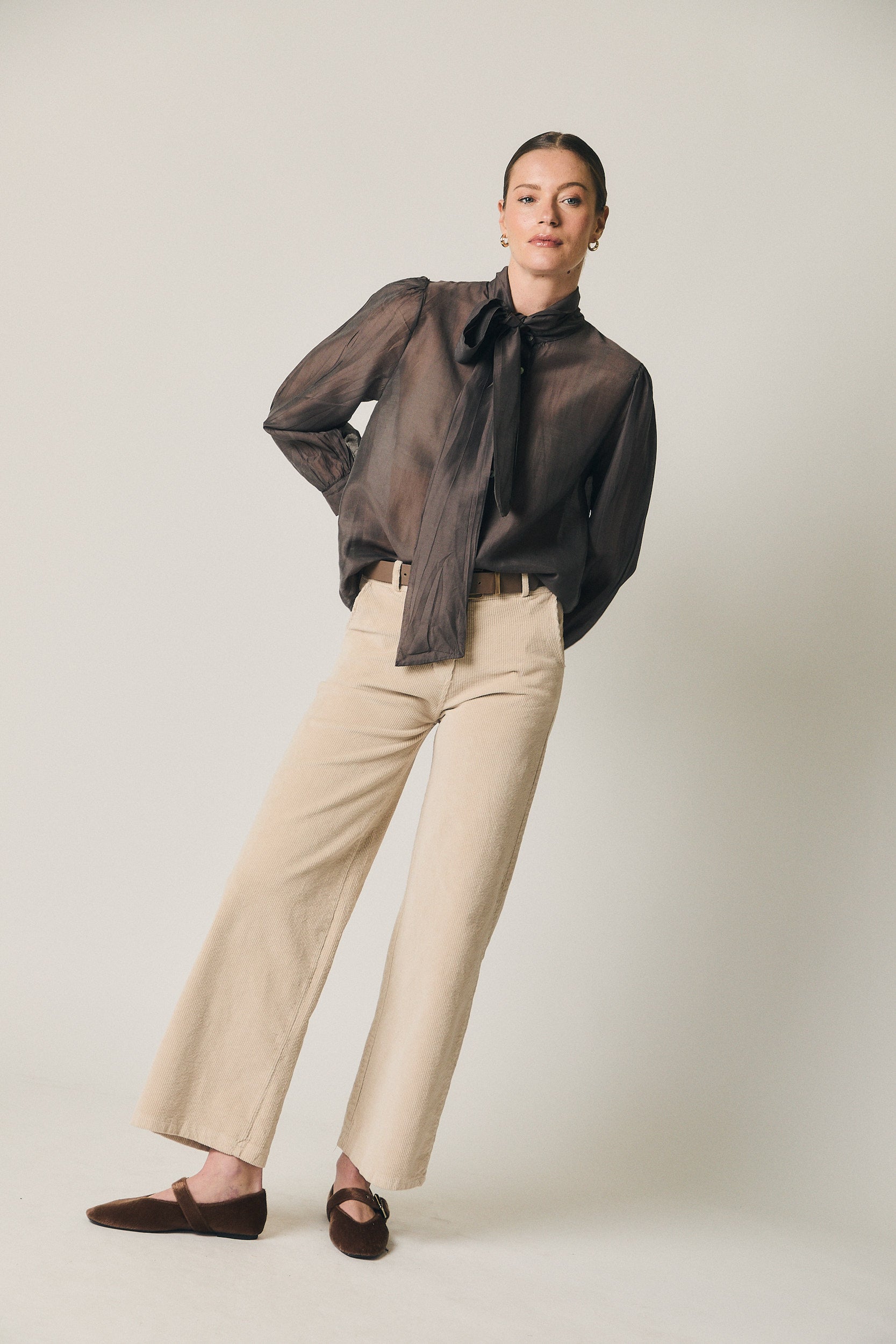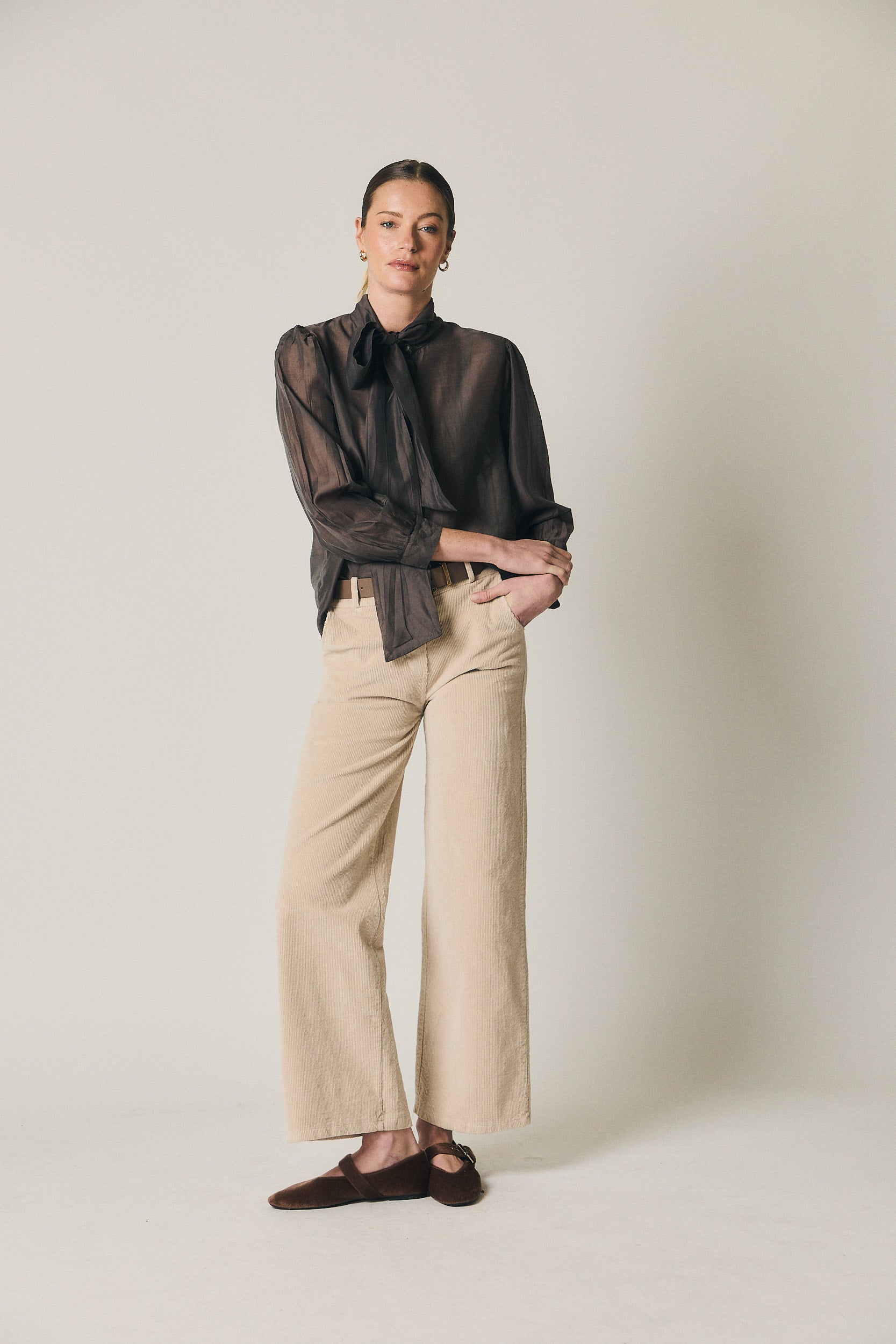 Una prenda pensada para el día a día, fácil de integrar en looks de trabajo o planes informales. Combina bien con blusas fluidas, camisas lisas o jerséis de punto fino, tanto por dentro como por fuera. Funciona especialmente bien con tonos crudos, beige, negro o marrones para un conjunto equilibrado y atemporal.