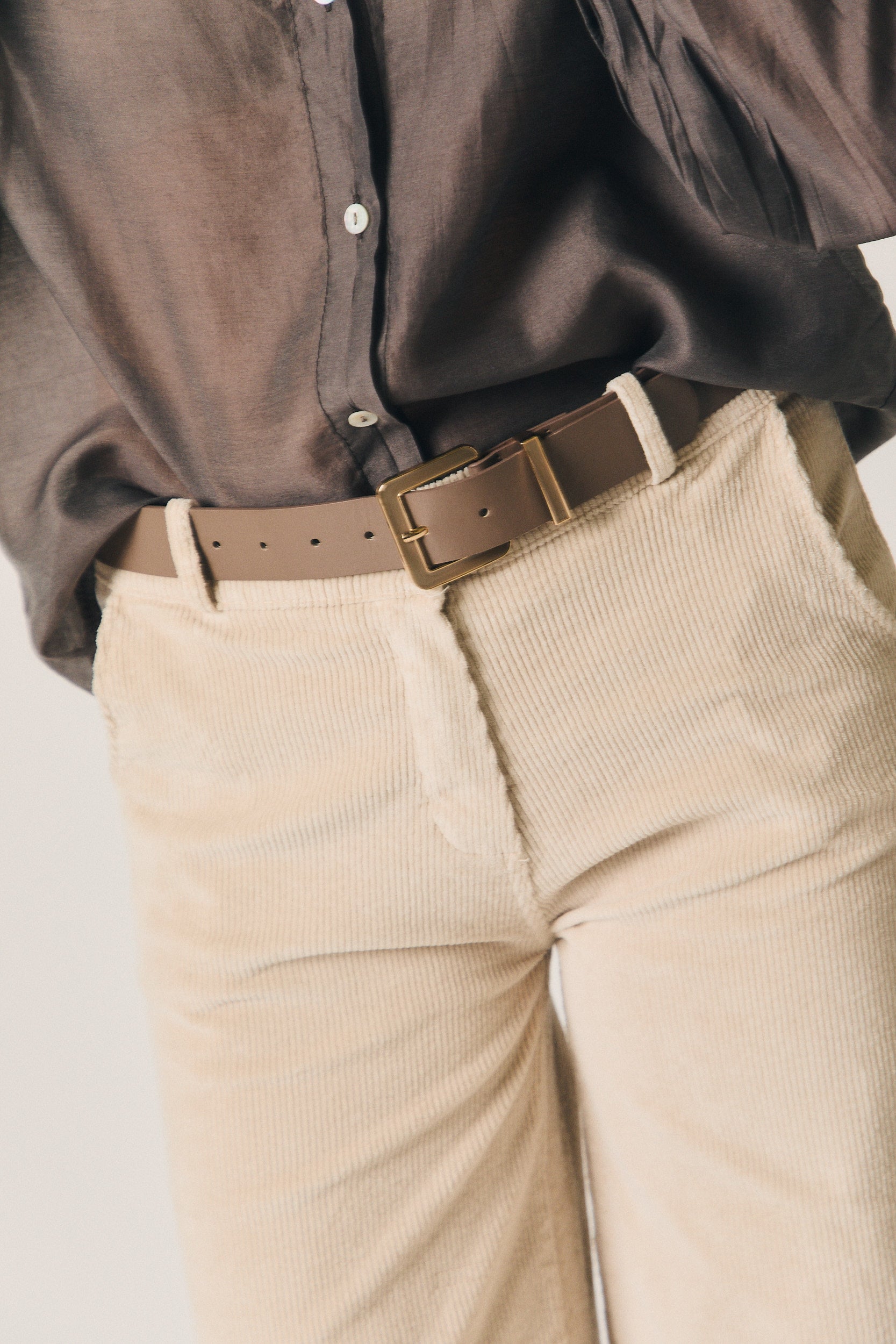 Pantalón recto pana cinturón beige