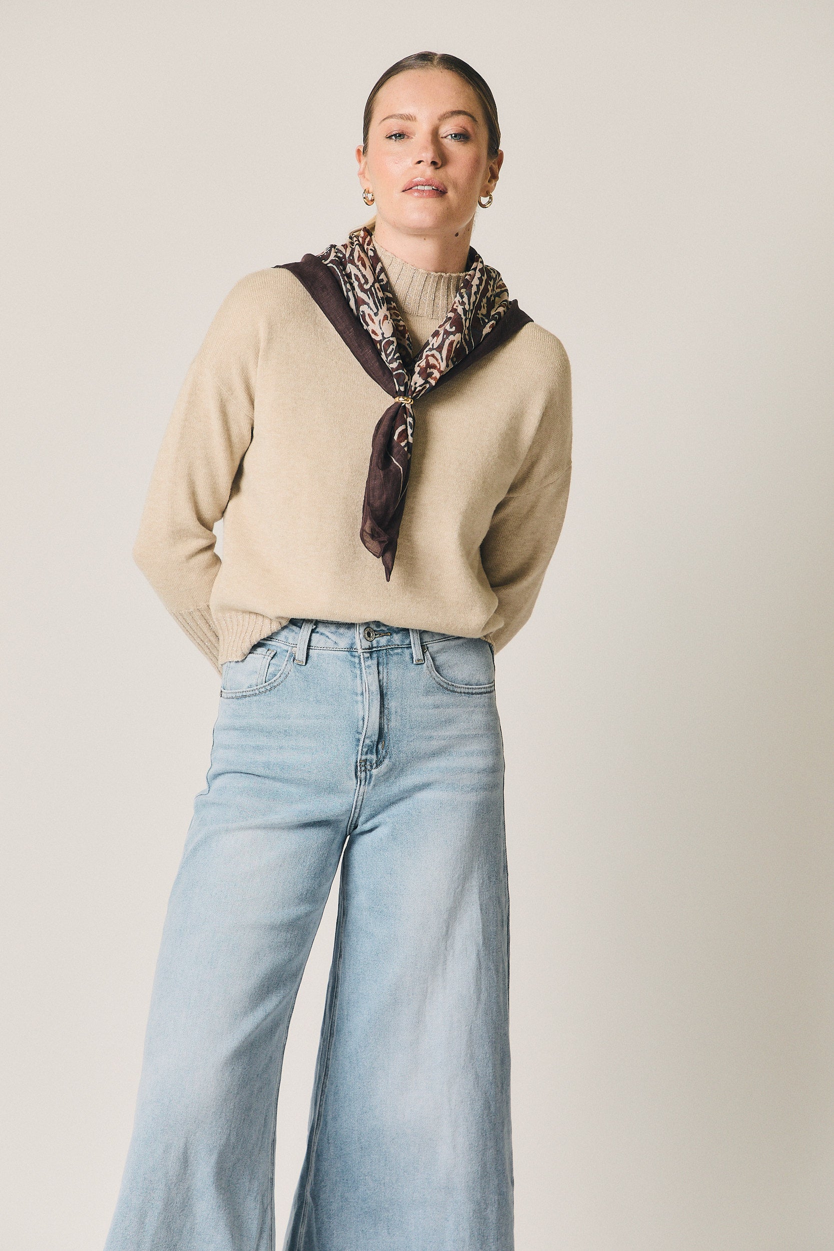 Un vaquero pensado para looks de diario con un punto más contemporáneo. Funciona especialmente bien con jerseys ajustados, camisas metidas por dentro o blusas fluidas. Acompáñalo con calzado plano para un look relajado o con zapatos más estructurados para darle un aire más urbano y cuidado.
