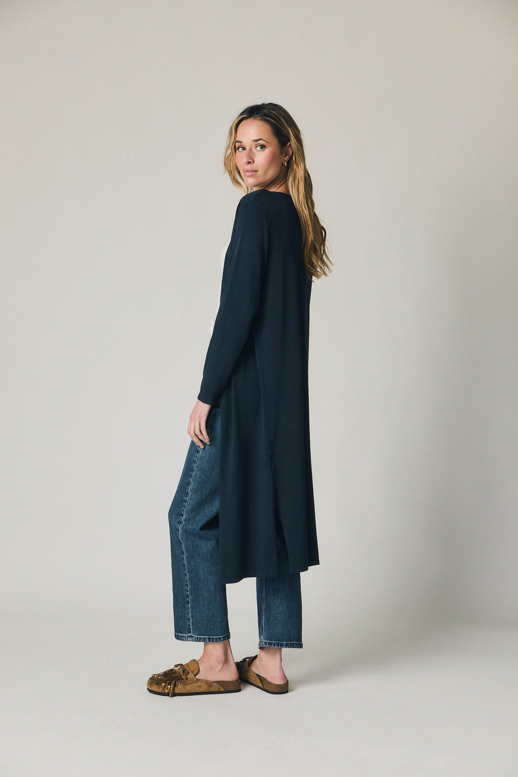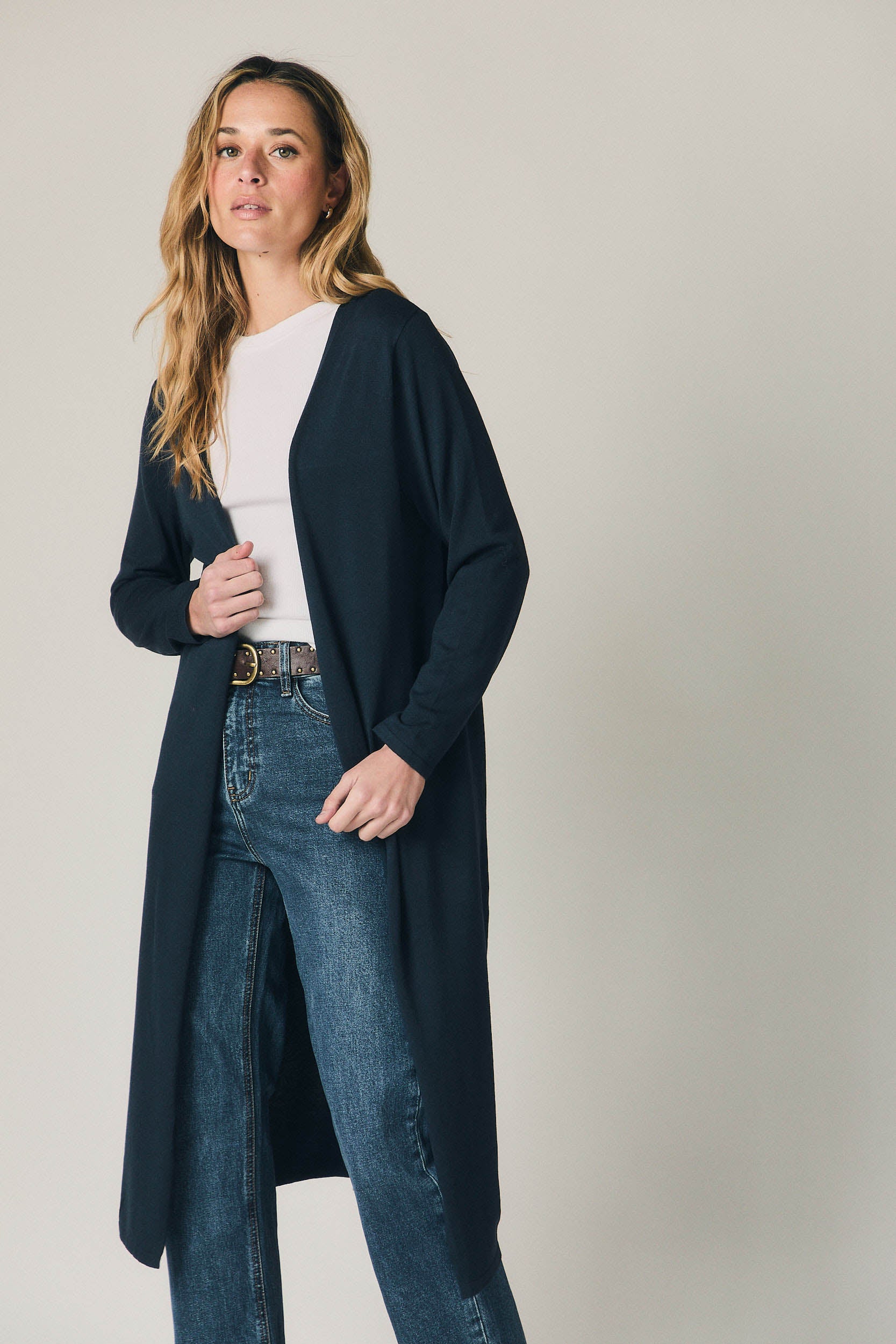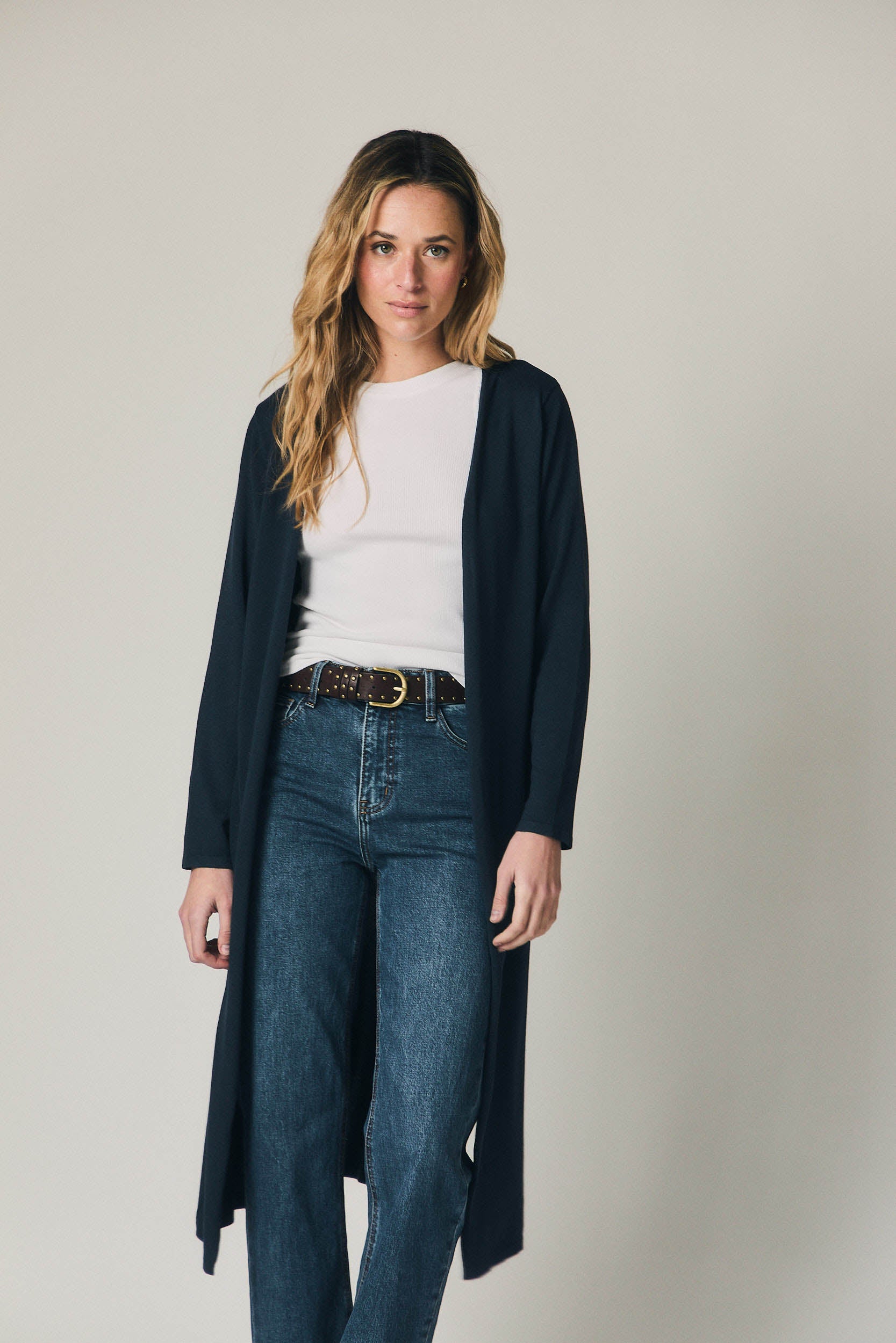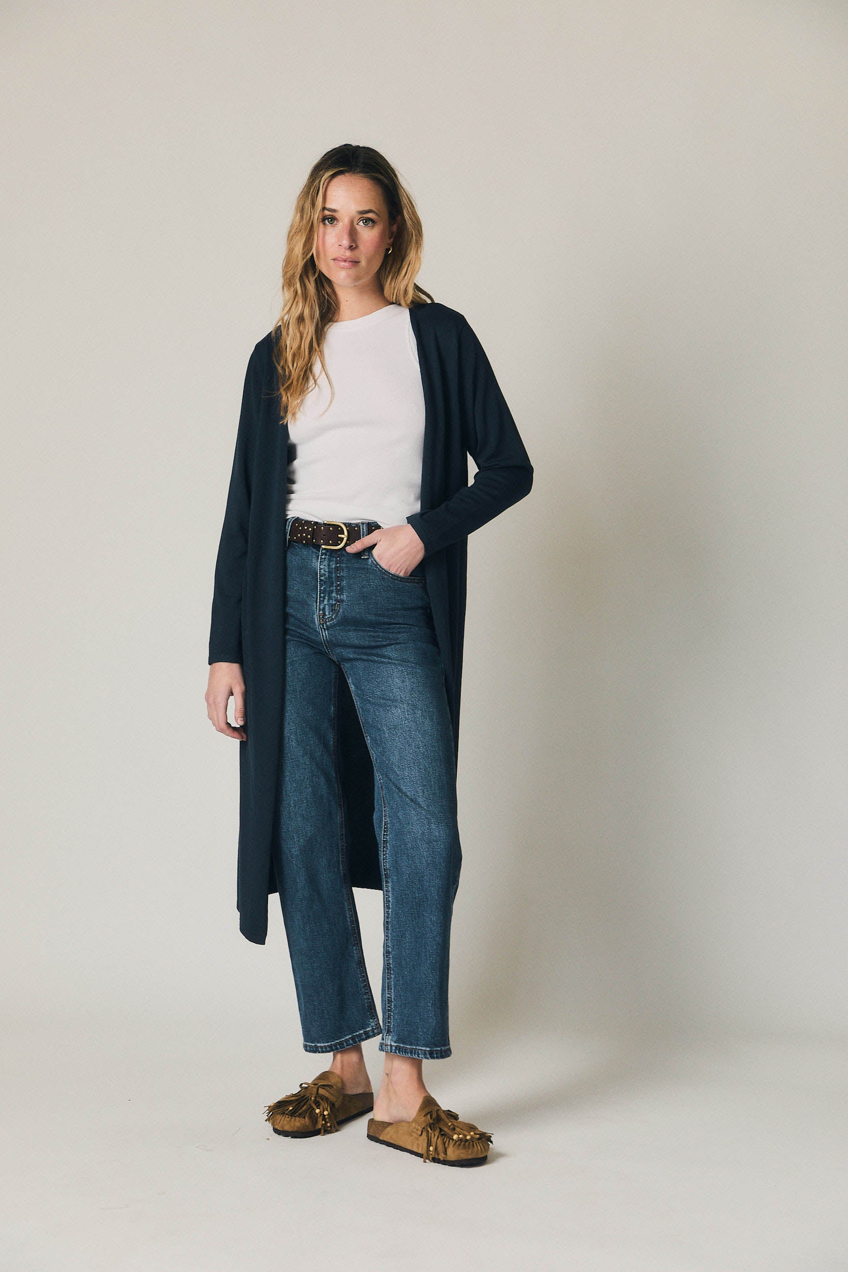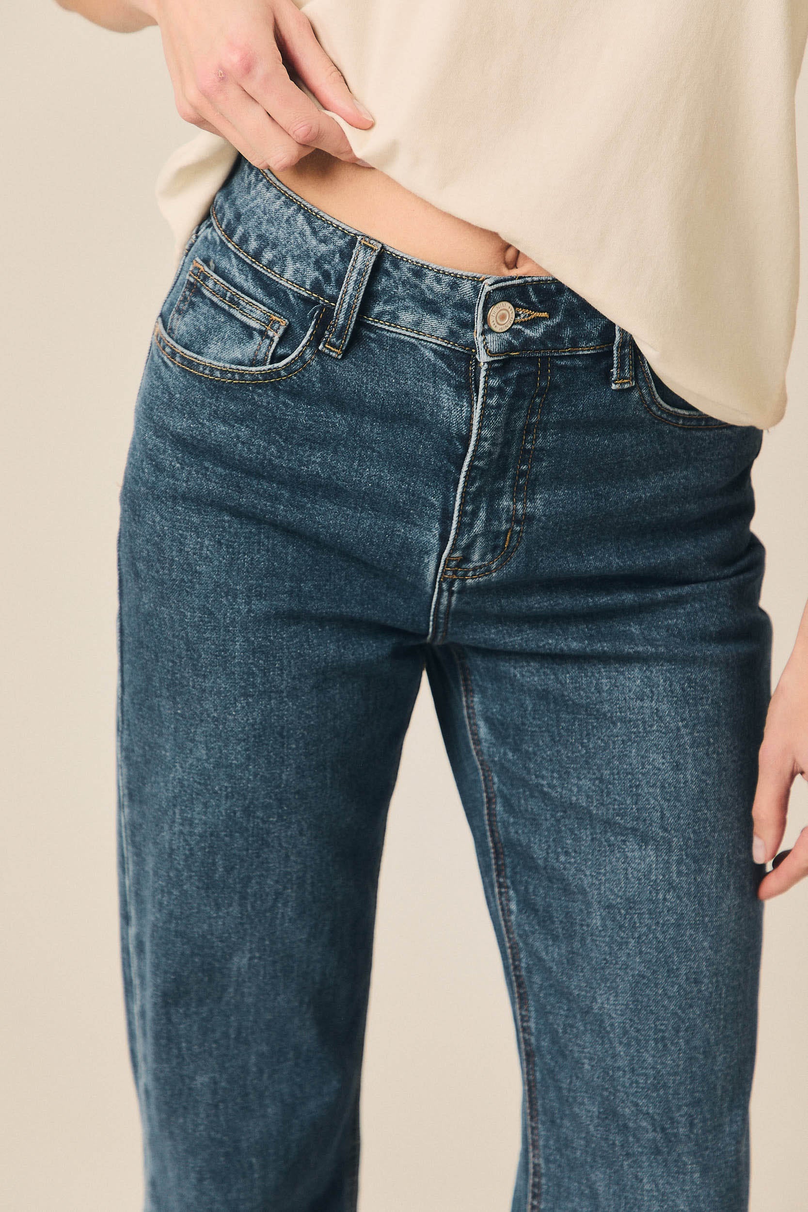 Un vaquero pensado para el día a día, fácil de integrar en cualquier armario. Combina bien con blusas fluidas, camisas de rayas o jerseys de punto, funcionando igual de bien en looks informales como en conjuntos más cuidados para el trabajo o el fin de semana.