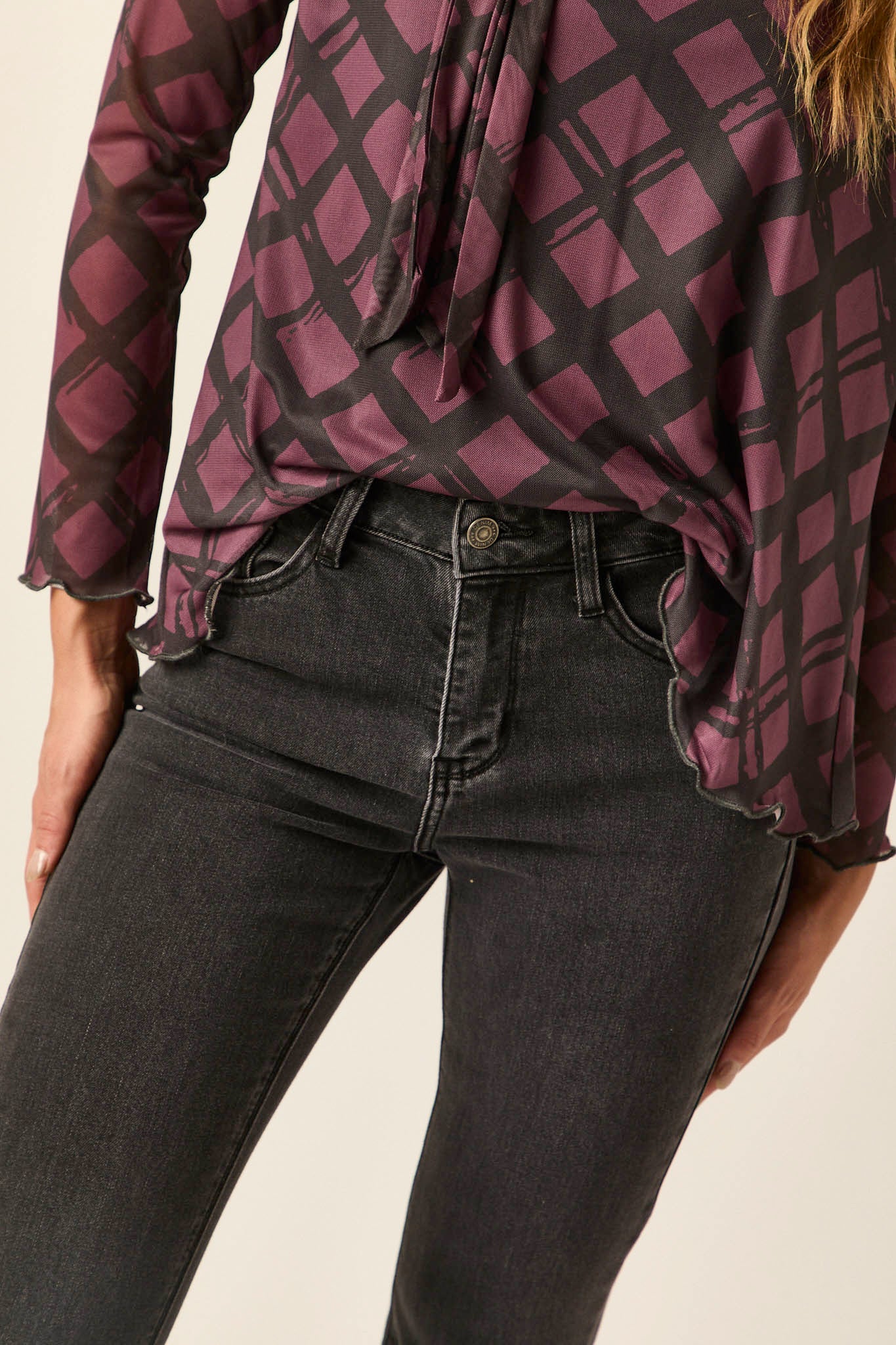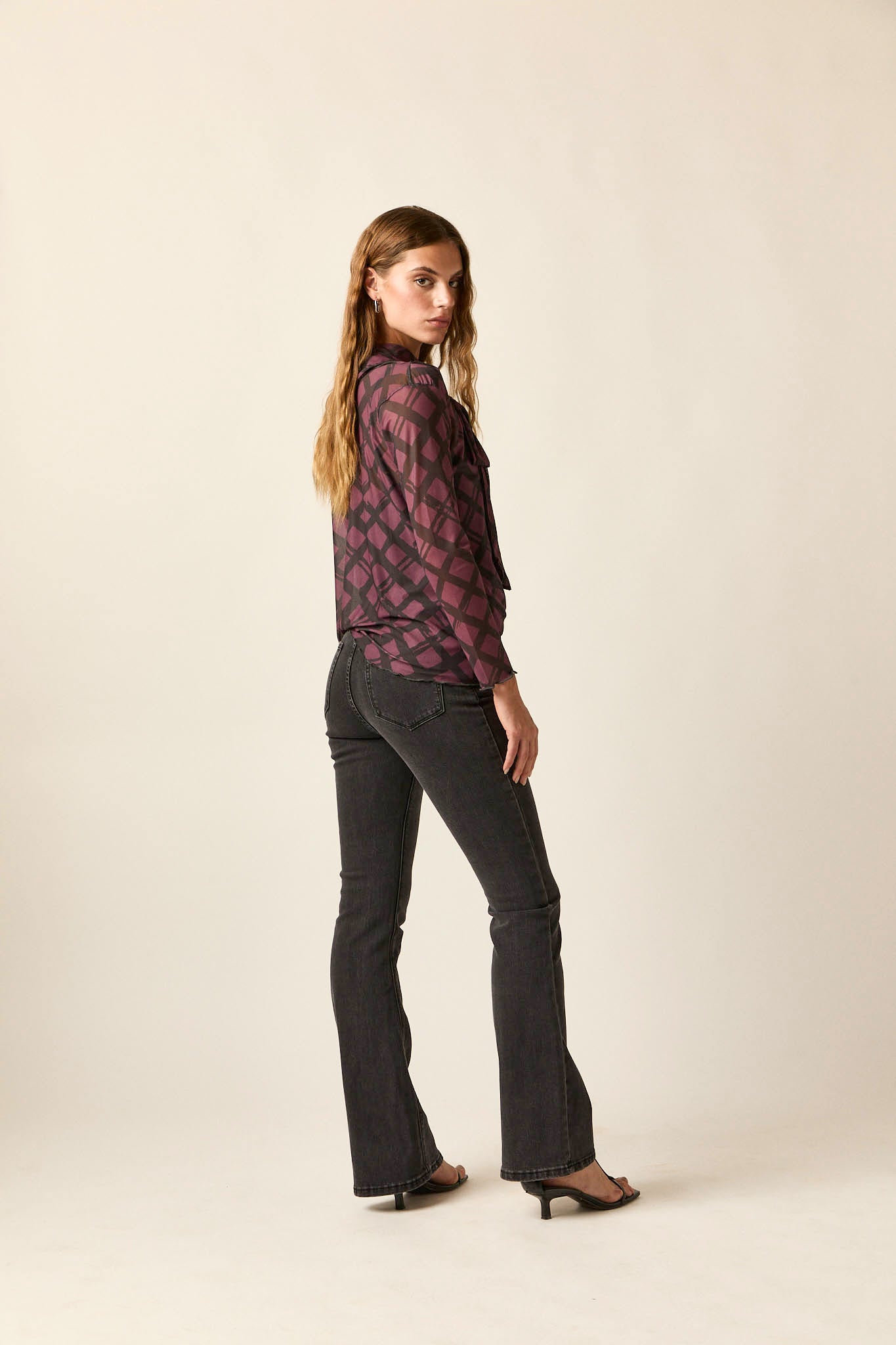 As calças de ganga campana cinza destacam-se pelo seu corte elegante e moderno. Com cintura média, cinco bolsos práticos e fecho clássico de botão metálico e fecho-éclair, estas calças apresentam um baixo acampanado que alonga e valoriza a silhueta. O tom cinza lavado confere versatilidade e sofisticação, tornando-as uma peça indispensável para quem procura estilo e conforto no quotidiano.
