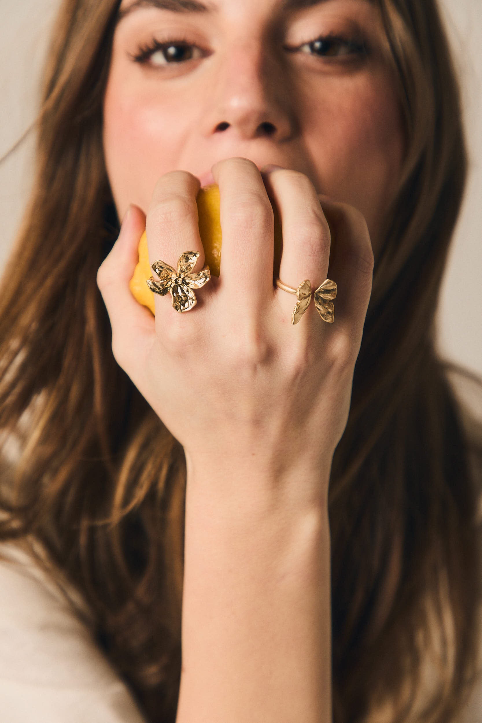 O anel borboleta dourado destaca-se pelo delicado motivo recortado em forma de borboleta, trabalhado num banho de ouro com brilho subtil. O aro é ligeiramente aberto, permitindo um ajuste confortável ao dedo e um encaixe seguro sem apertar.