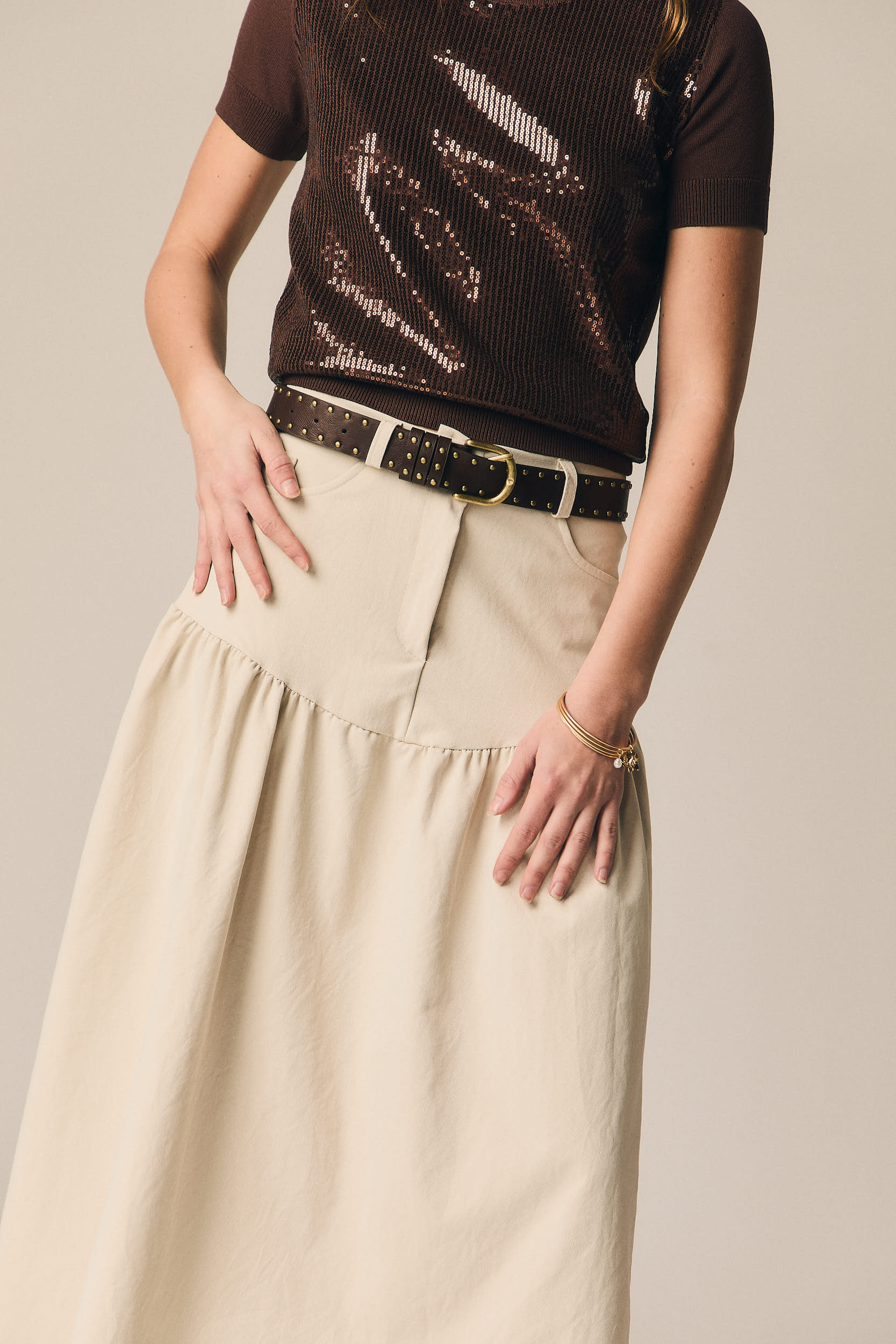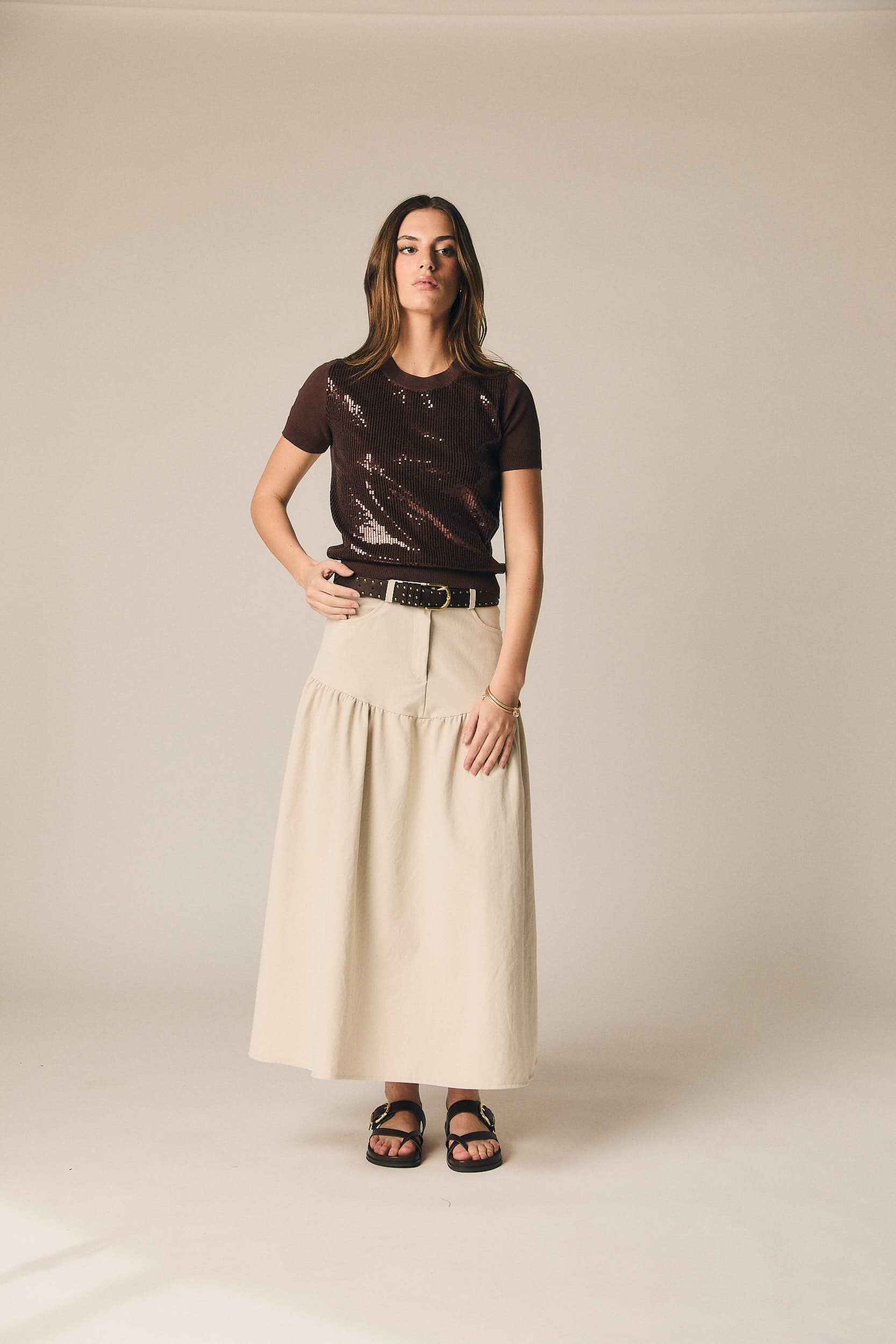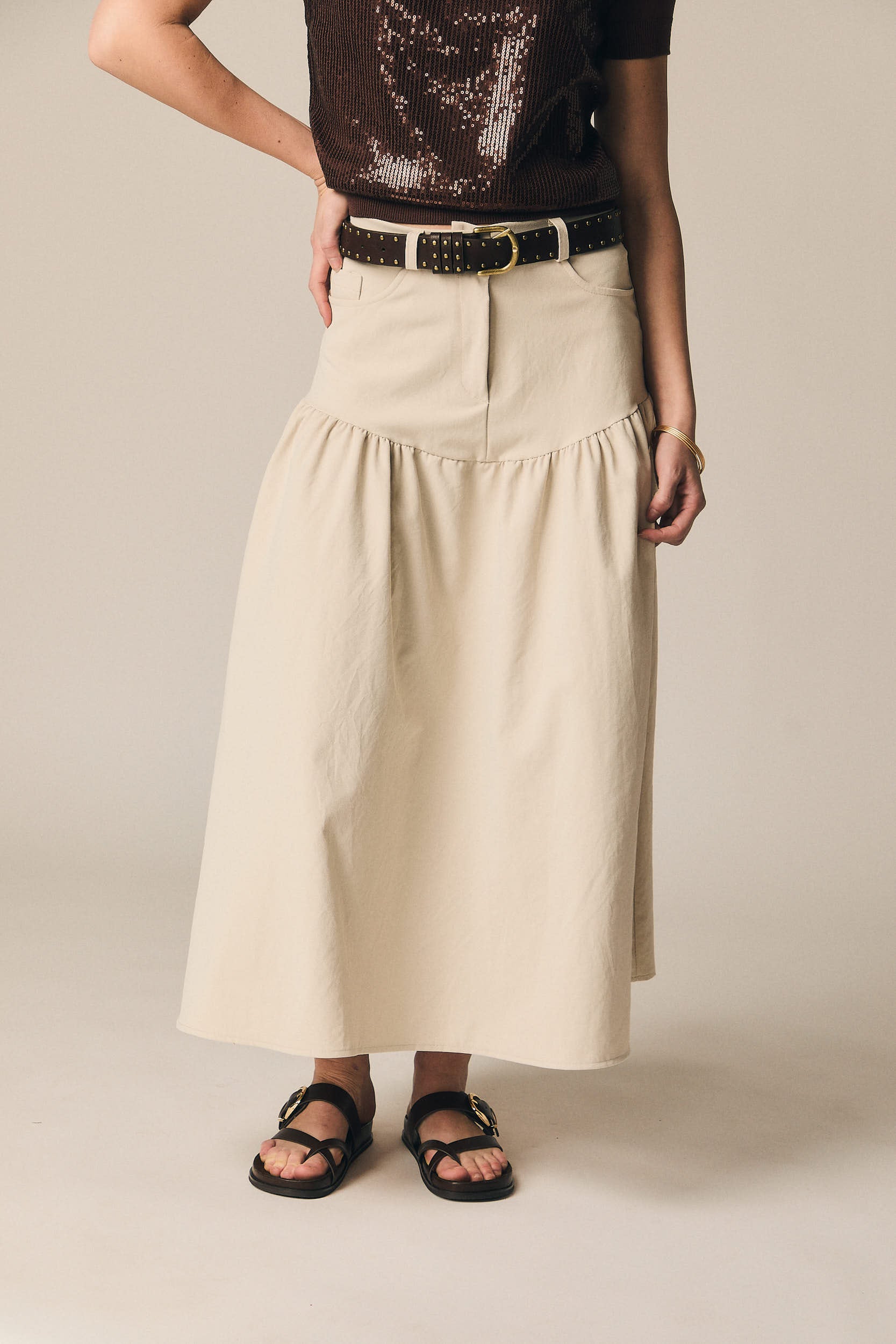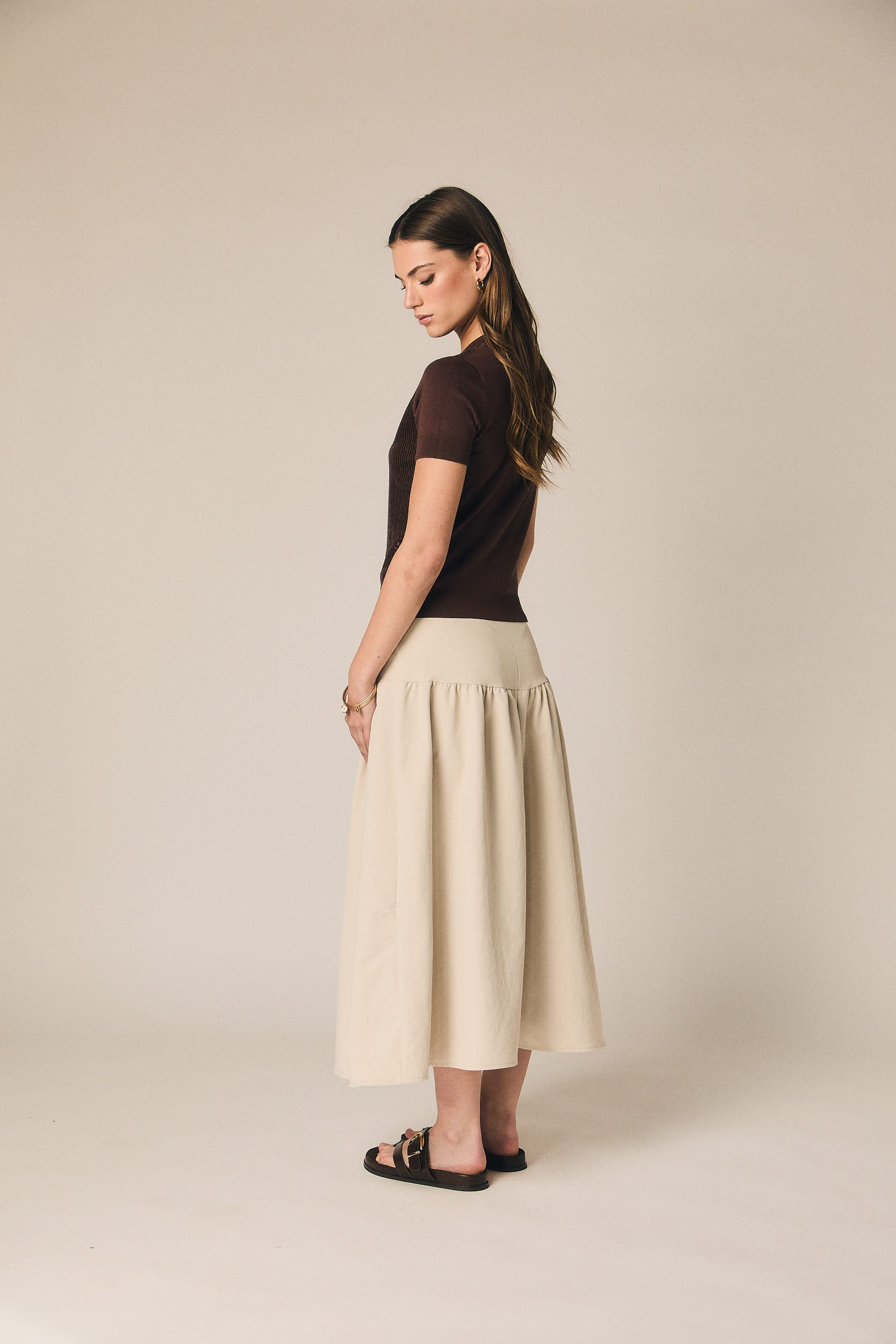 - Falda midi en color beige